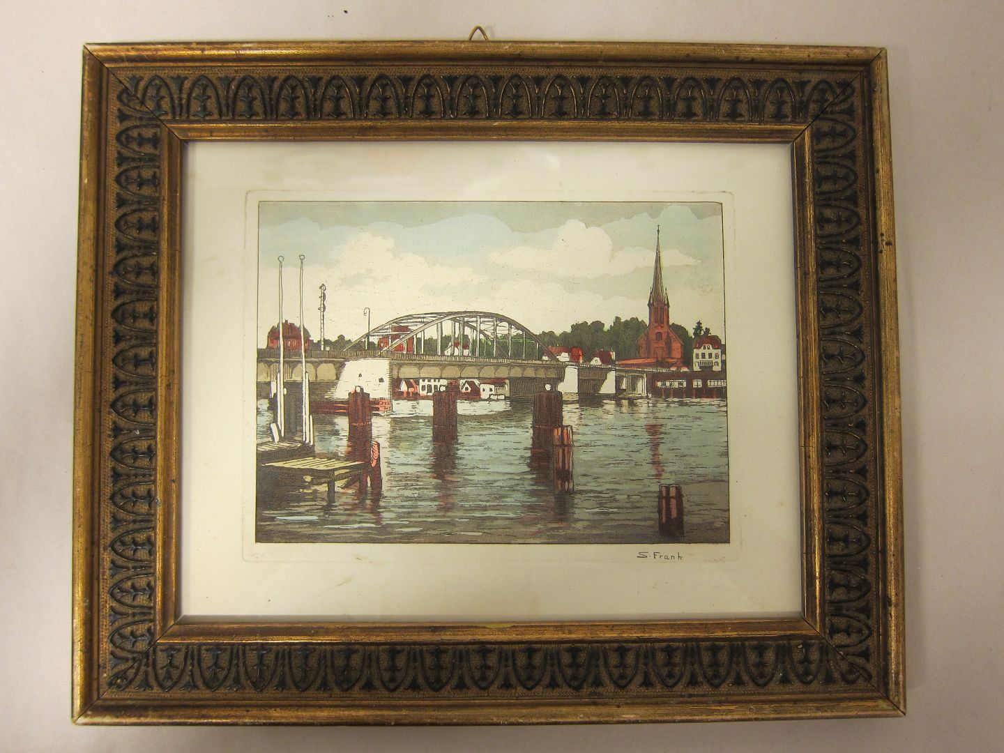Koloreret tryk i gammel ramme Koloreret tryk med motiv Sønderborg "S. Frank" 27cm x 23cm Varenr.: 81351