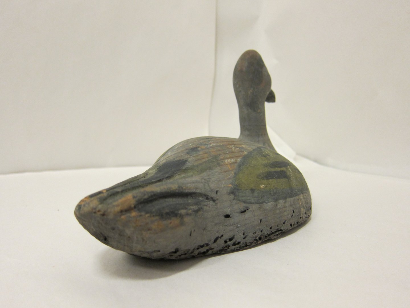 Lokkeand af bemalet træ, antik År 1850-1900 30cm x 15cm x 12,5cm Tørrevne og aldersspor Varenr.: 81882