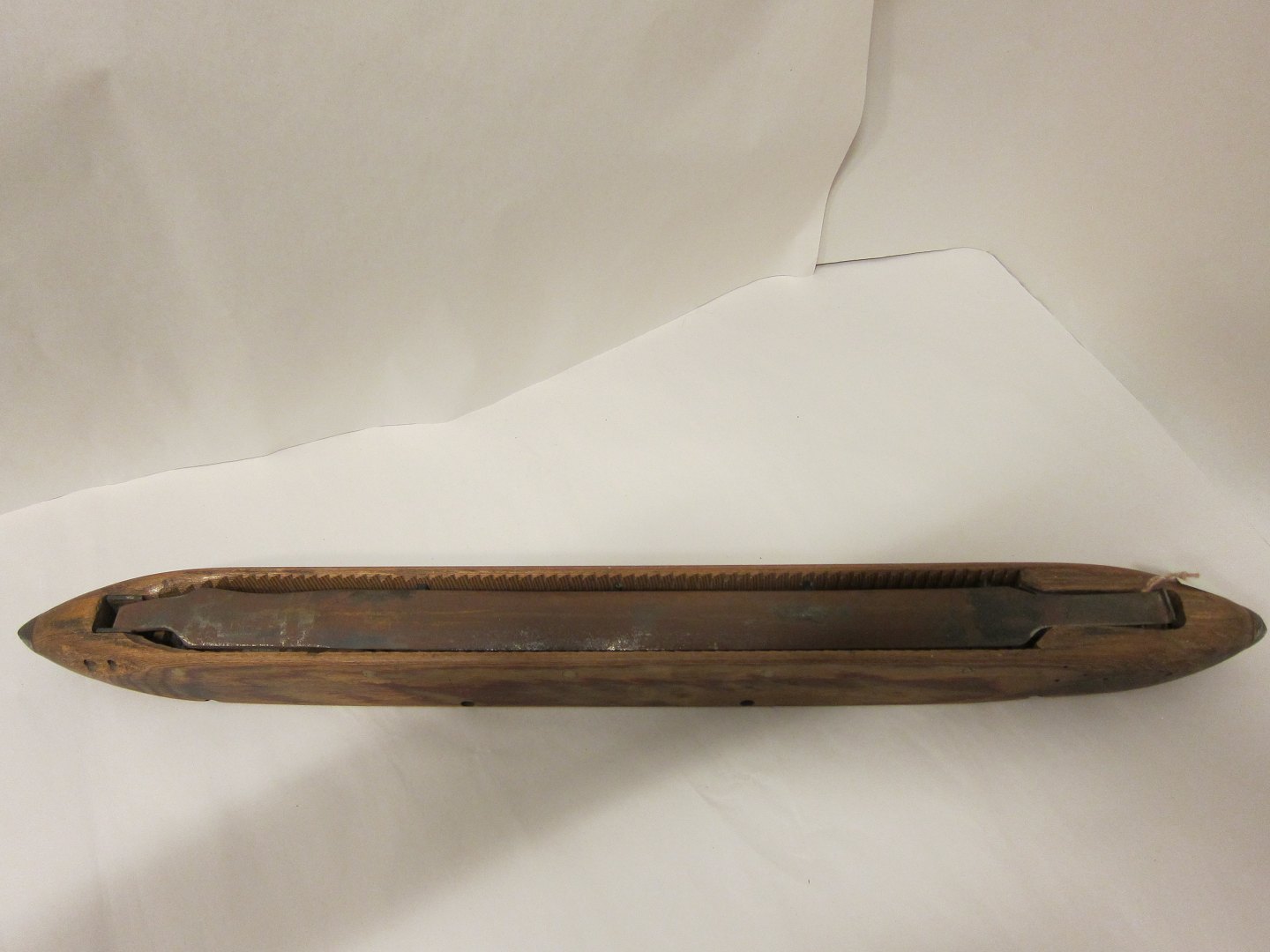 An old and very long/big weaver's shuttle