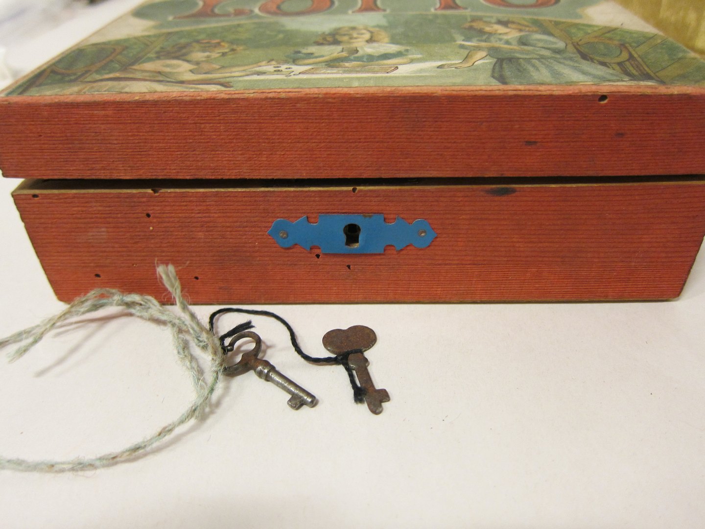 Lottospil Gammelt Lottospil i trææske med lås (nøgle medfølger) Varenr.: 412111