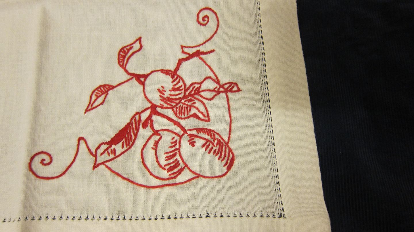 Mundservietterne er håndbroderede, fra dengang det var helt naturligt at sidde med broderigarn og nål