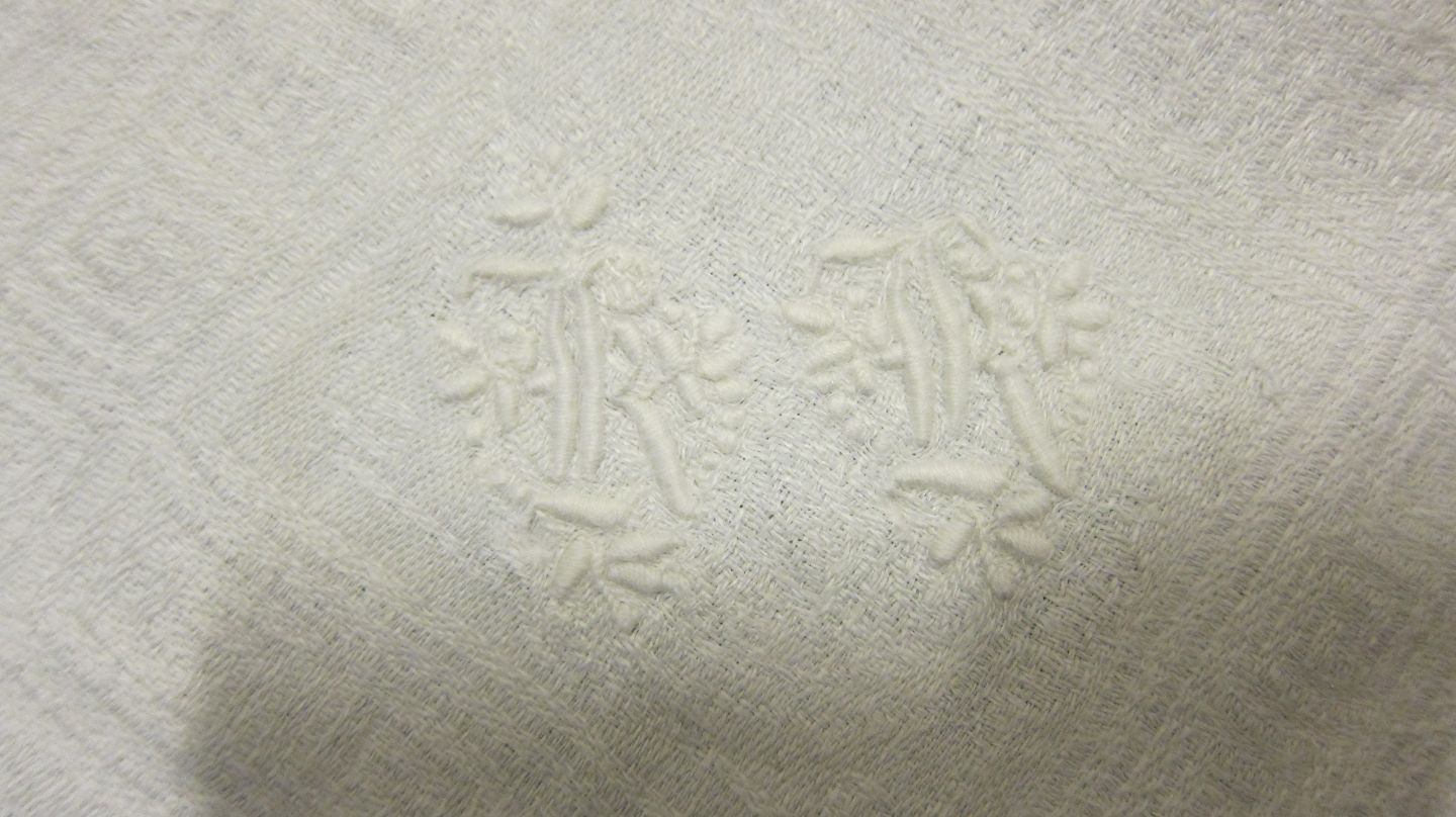 Mundservietter fra gammel tid af hør med smukt broderede initialer
