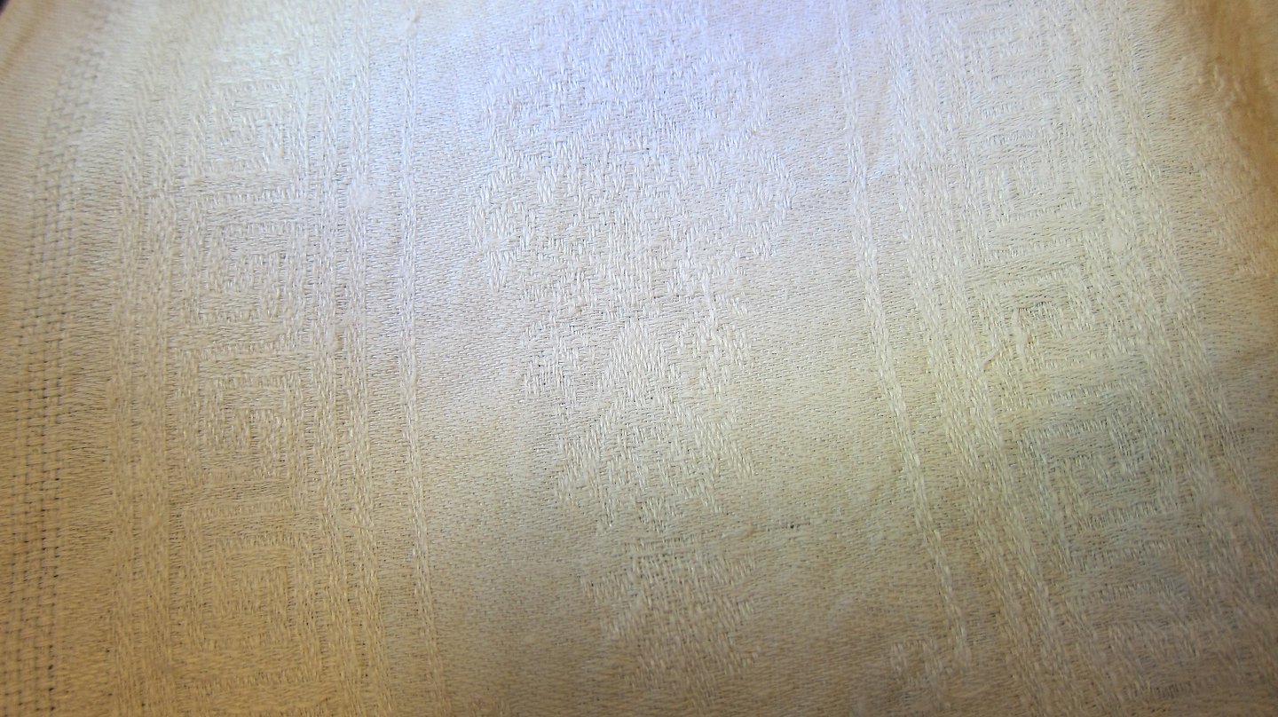 Bemærk den gamle smukke vævning, som desværre er meget svært at gengive på foto