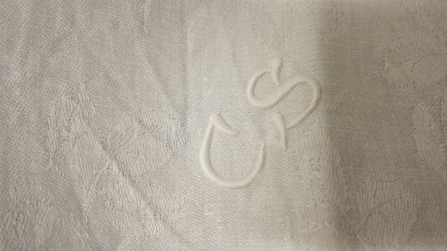 Mundservietterne er håndbroderede, fra dengang det var helt naturligt at sidde med broderigarn og nål