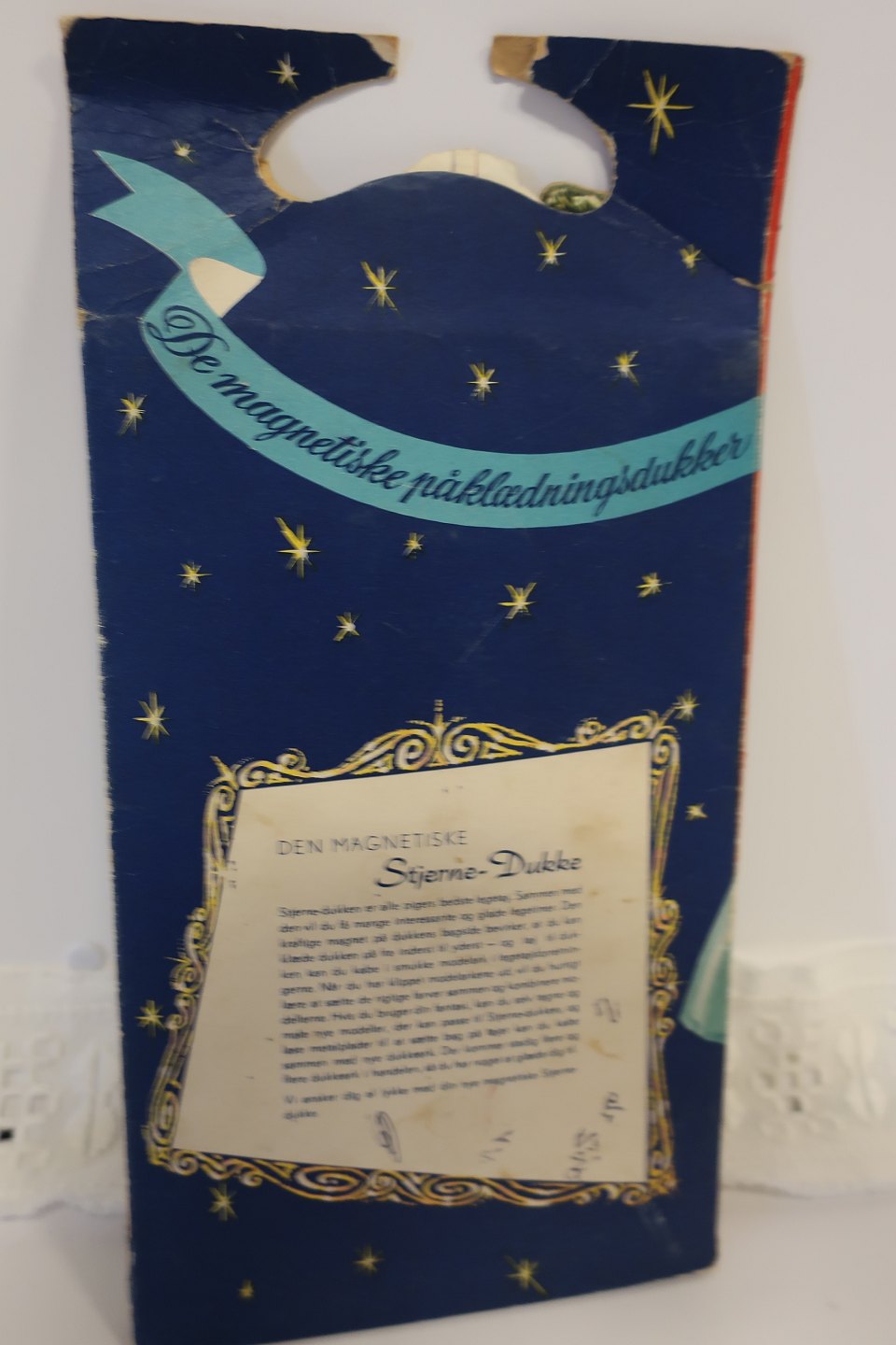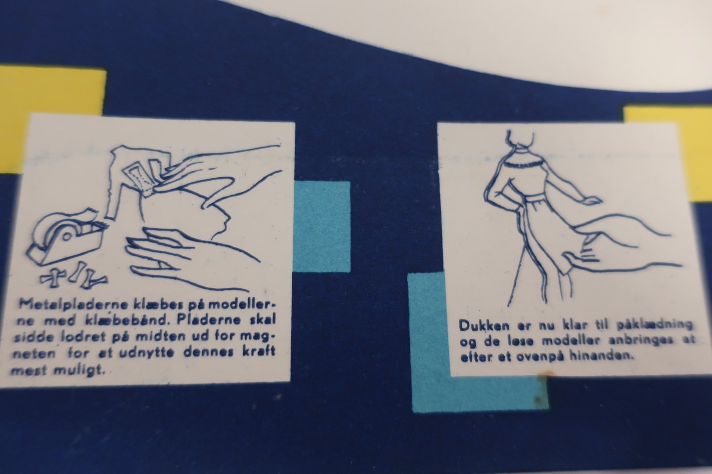 Selve dukken er forsynet med en magnet, og tøjet "hænger" på den måde fast på dukken. Løse metalplader medfølger