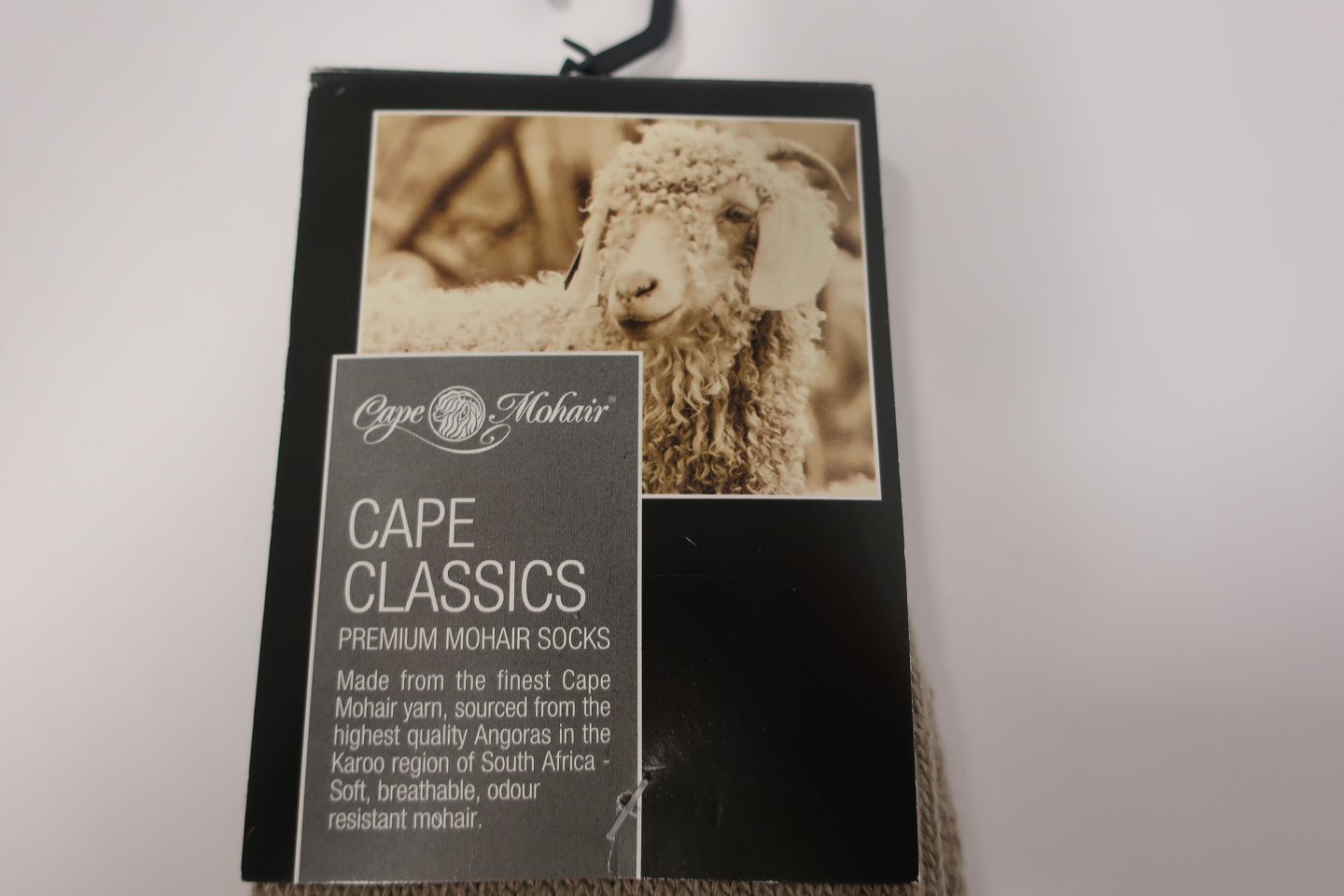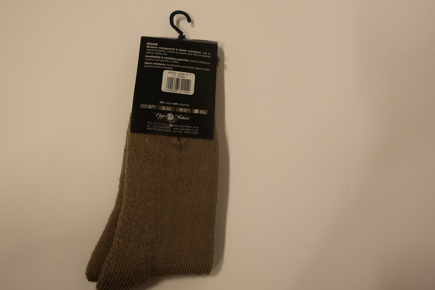 Lavet af den fineste kvalitet af Cape Mohair Yarn (garn) udsøgt af den højeste kvalitet af Angora i Karoo Regionen i Syd Afrika, - Premium Mohair Socks