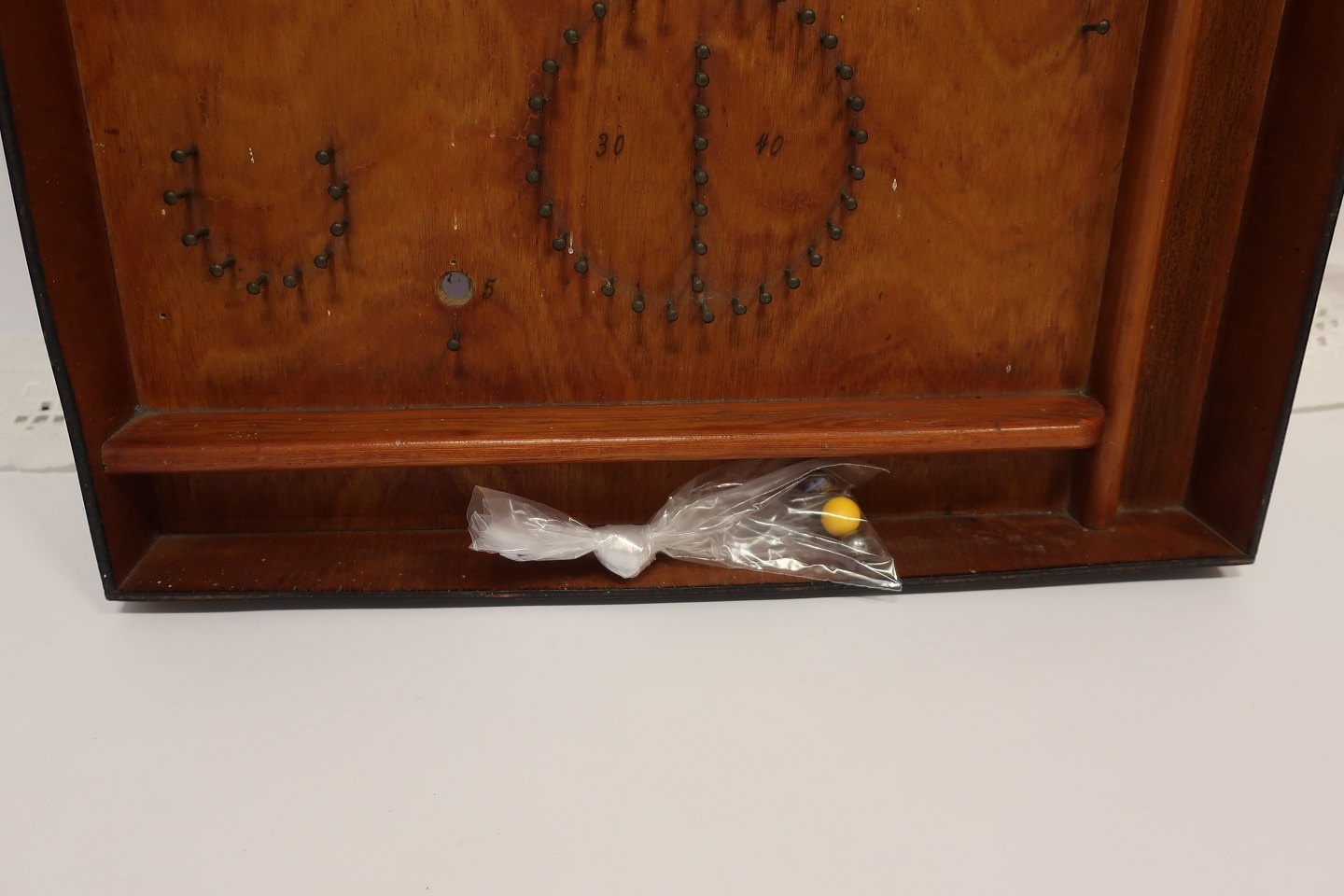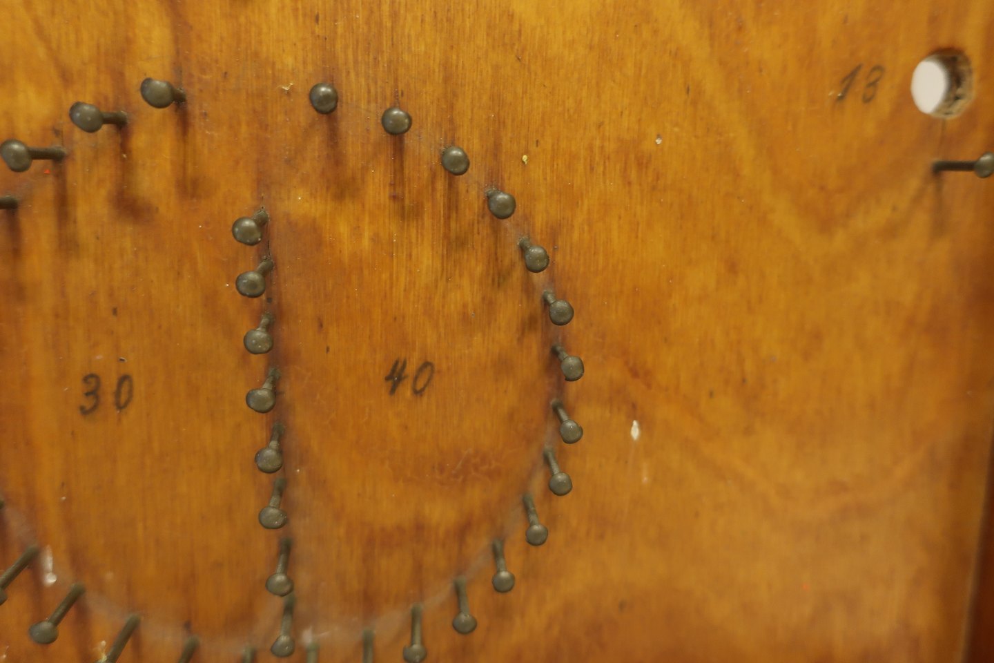 Gammelt kuglespil i træ inkl. kugler Et herligt spil for voksne og børn Bemærk de håndskrevne tal Varenr.: KL1006