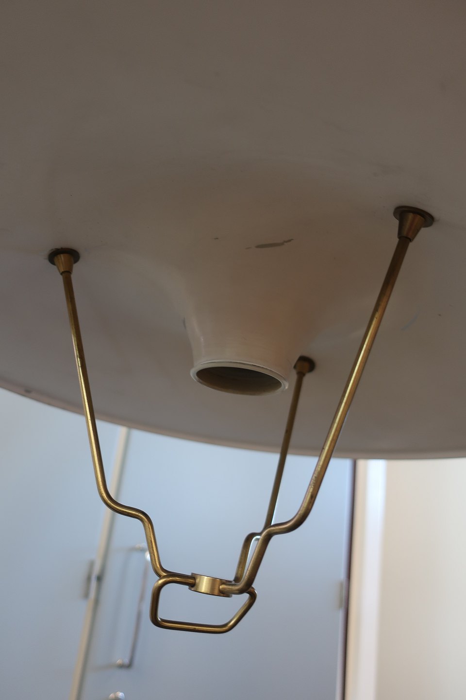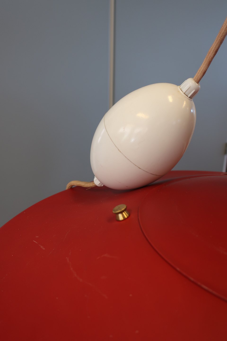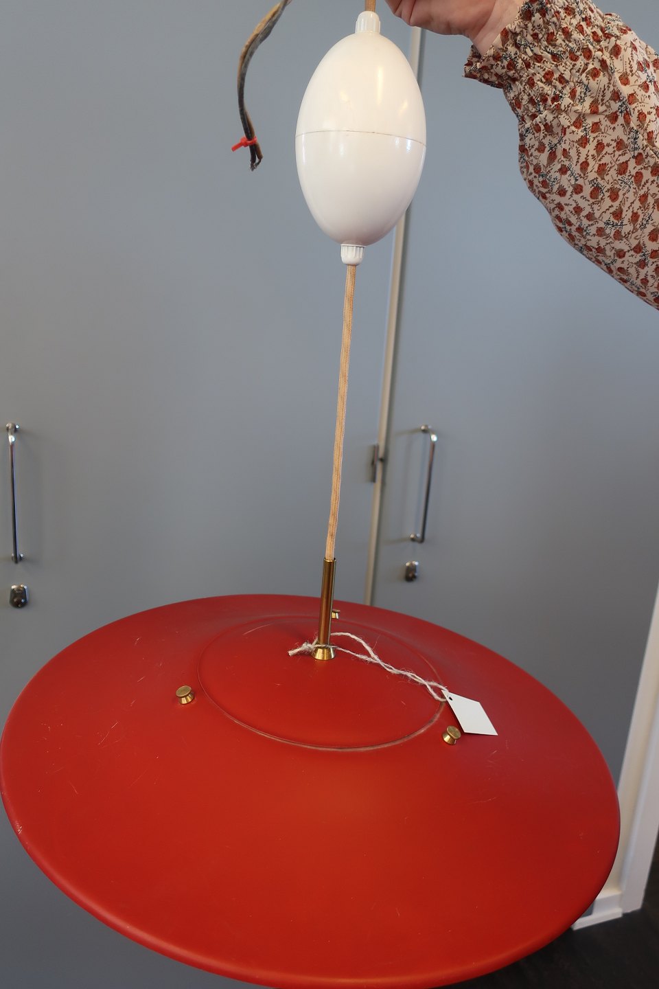 Retro Loftspendel/ - lampe med hejs Stor loftslampe, malet metal med messing, flot rød Stand i forhold til alder, Fungerer Varenr.: 31912