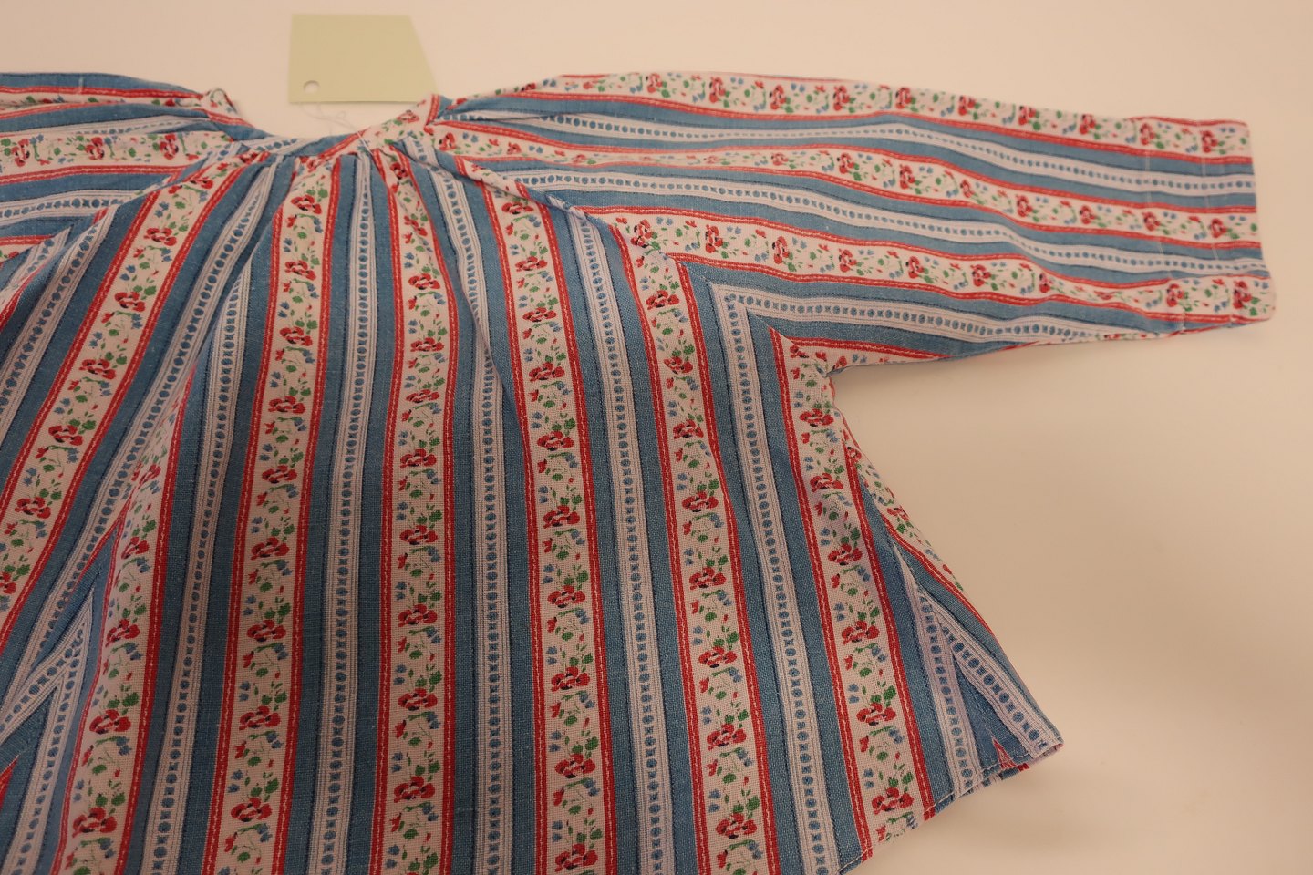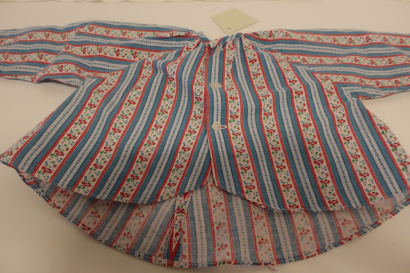 Smækbukserne har flæser i benkanten og trøjen har knapper i ryggen med flotte buede kanter