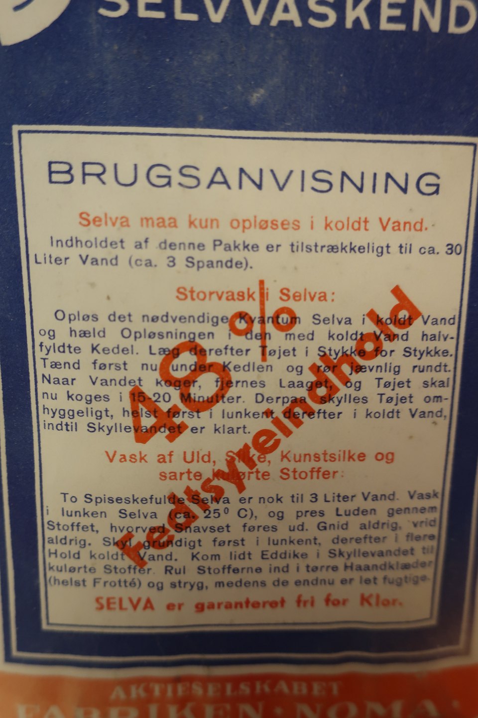 Vaskepulverpakke "SELVA" indeholdende det selvvaskende vaskepulver