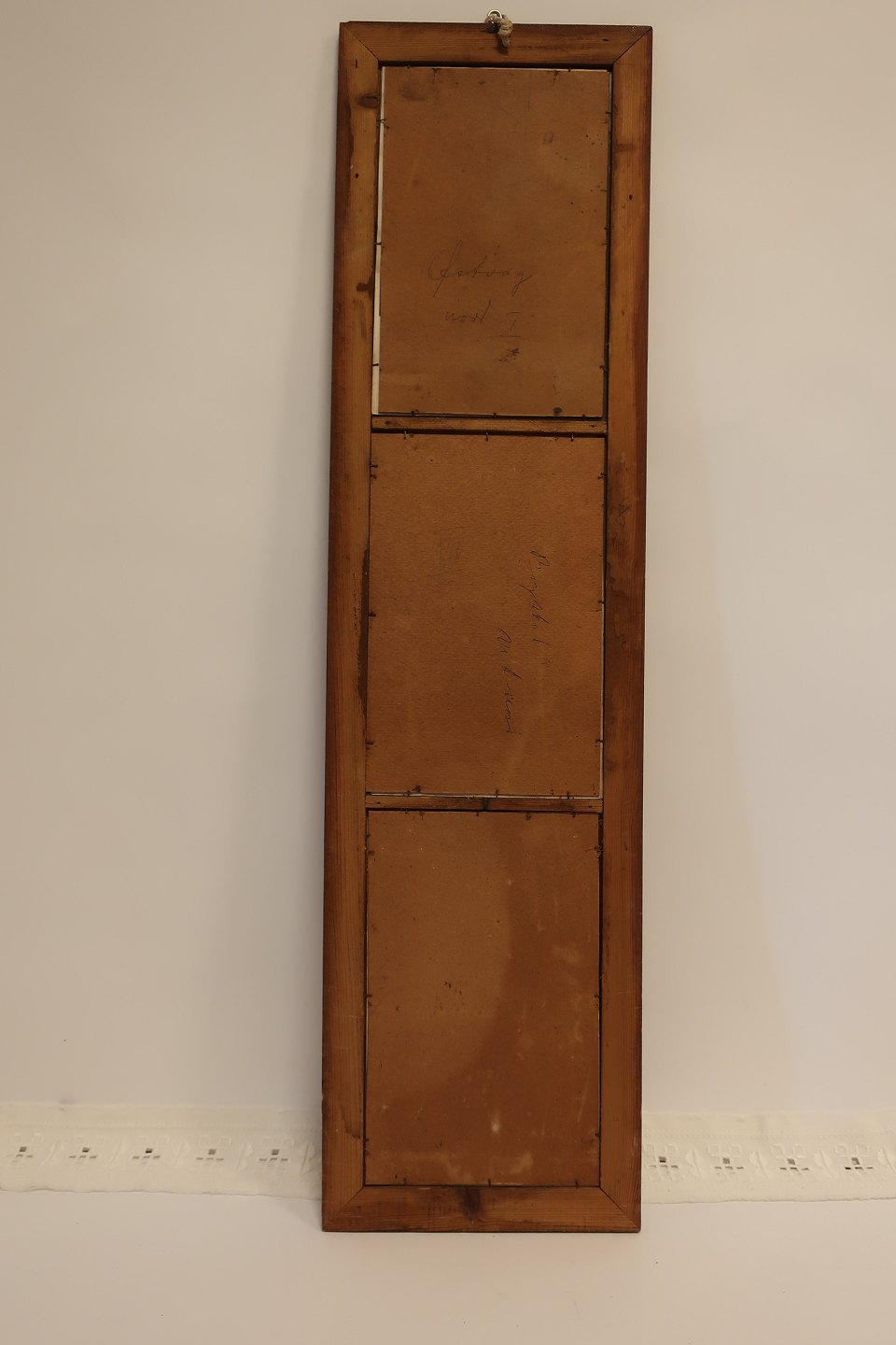 Bagside af træ, hvorpå er håndskrevet: "Østvæg nord I", "B...skab Vest rum"