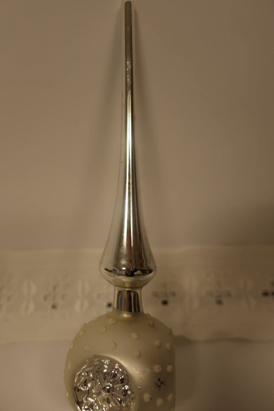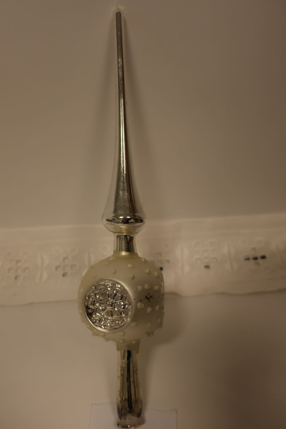 Julespir af glas Gammelt, smukt julespir med reflektor, sølvfarvet, - flere detaljer God stand Varenr.: 4-020112f