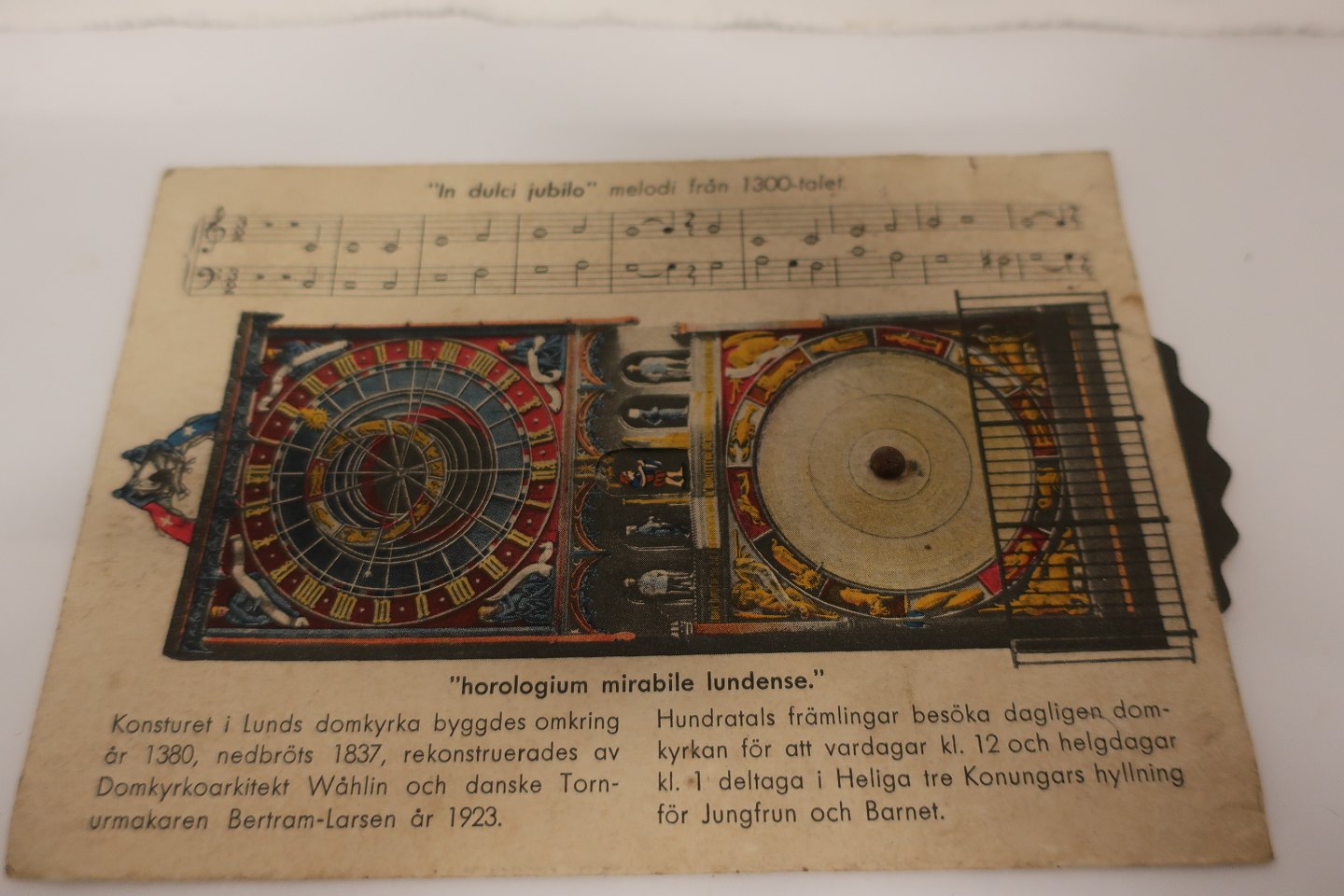 Postkortet er med "drejehjul", ved hjælp af hvilket, det er muligt at dreje mange figurer frem, som vises i de små firkanter (se fotos) Vi har desværre ikke mulighed for at vise alle de små og specielle detaljer, som findes på dette utrolige postkort