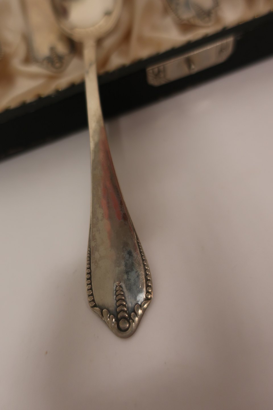 Teskeer af sølv i original æske