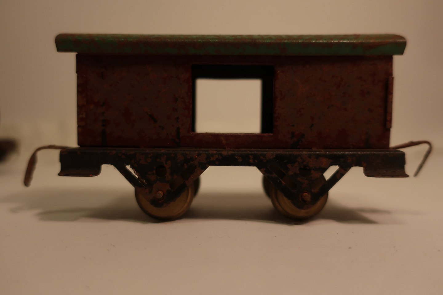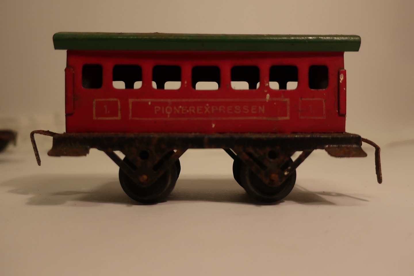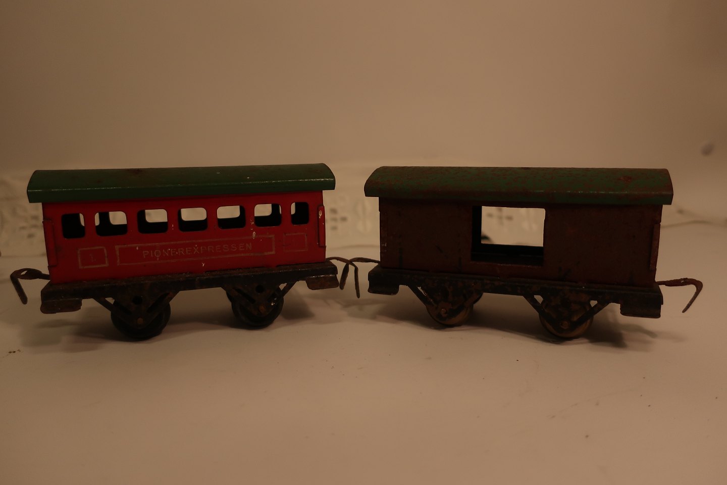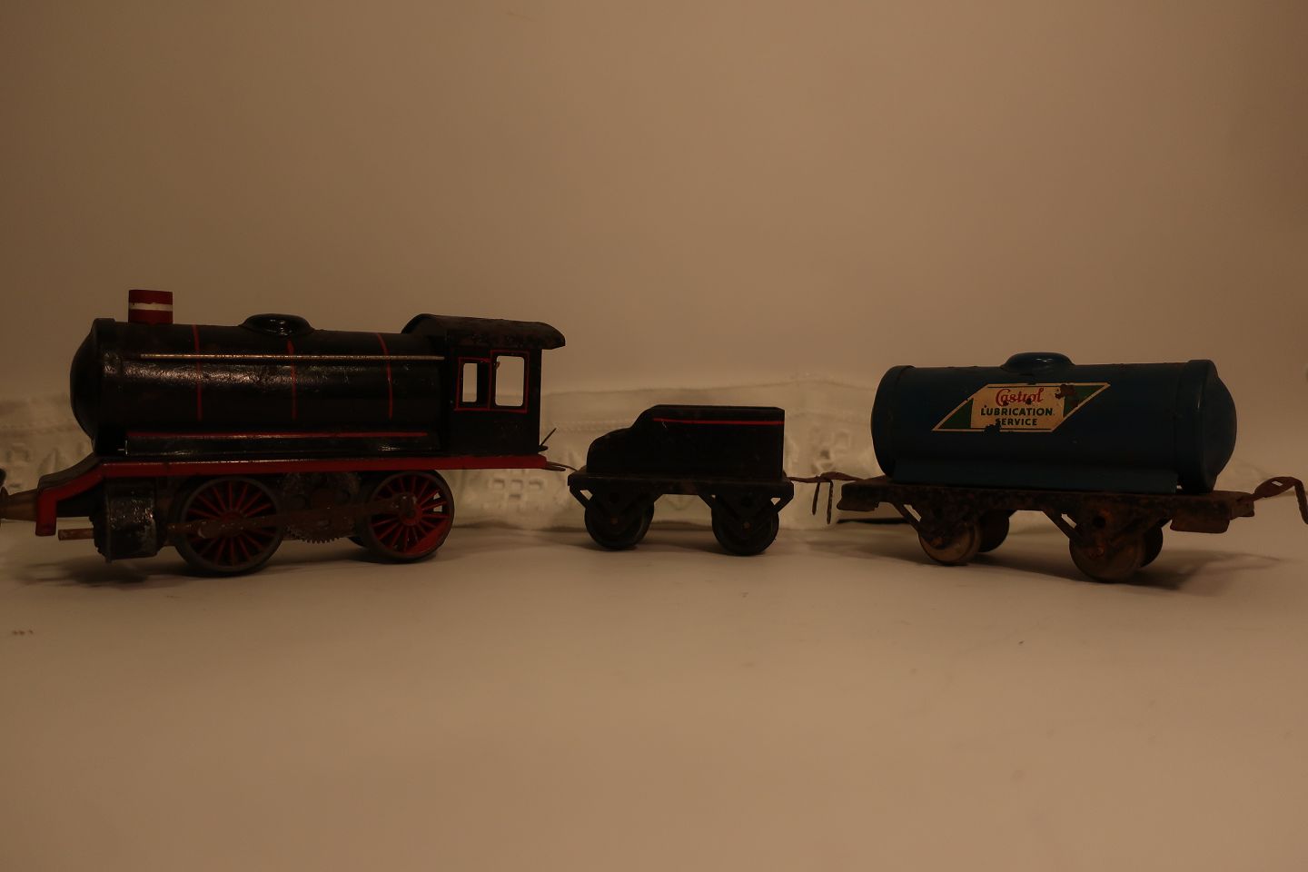 Lokomotiv, Tender, 3 vogne (heraf 1 Castrol Lubrigation Service) samt skinner 9 buede + 4 lige (med rust)