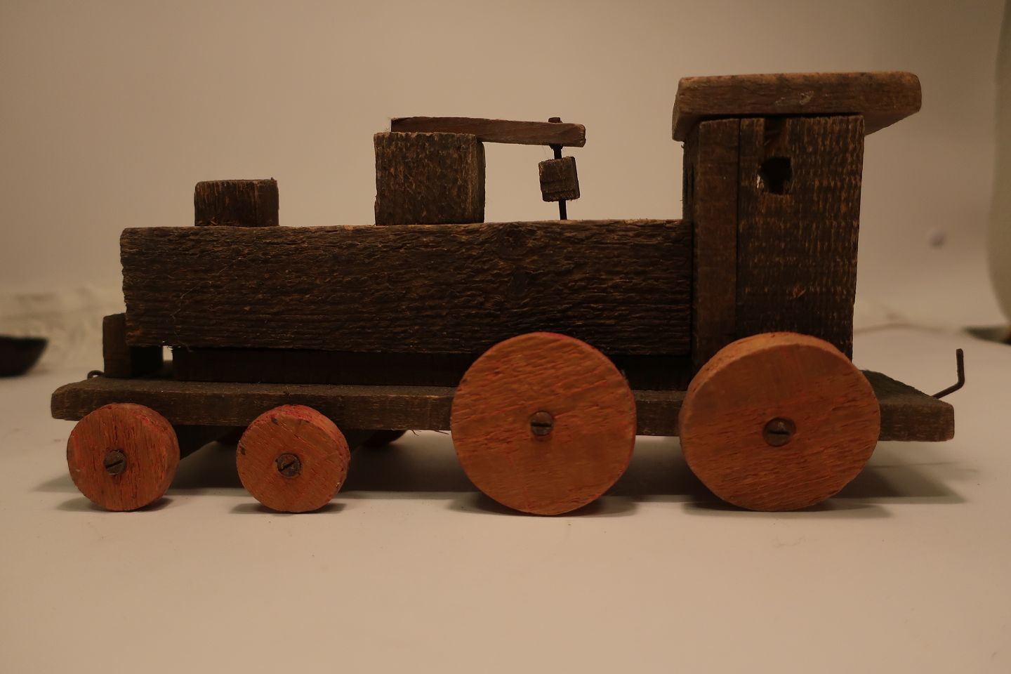 Lokomotiv af træ Gammelt hjemmelavet lokomotiv af træ Fra dengang, hvor vore børn var glade for at få noget, som var hjemmelavet Varenr.: 4-0276