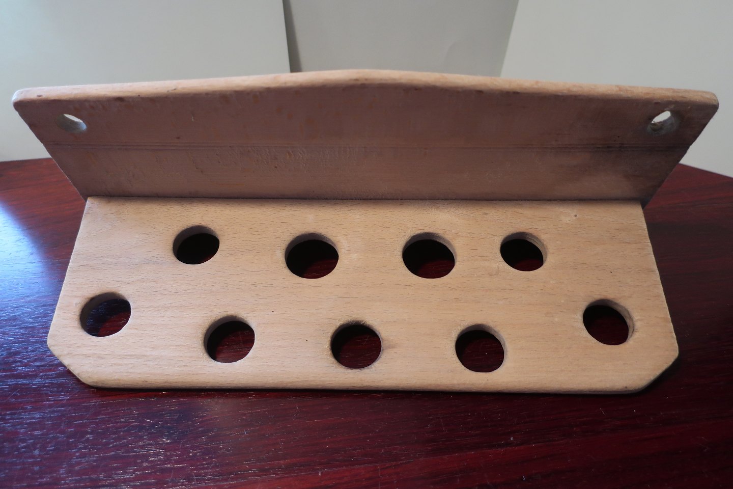 Gammel skeholder med plads til mange skeer Lavet af trę I god stand Varenr.: 4-51221