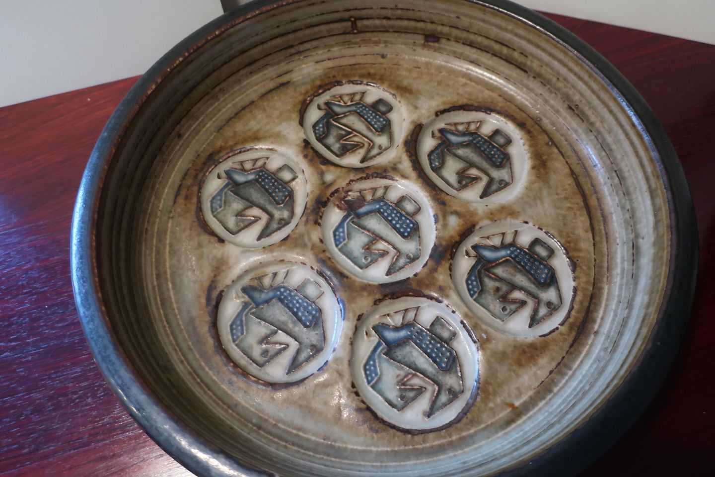 Royal Copenhagen (RC) fad/flad skål af stentøj