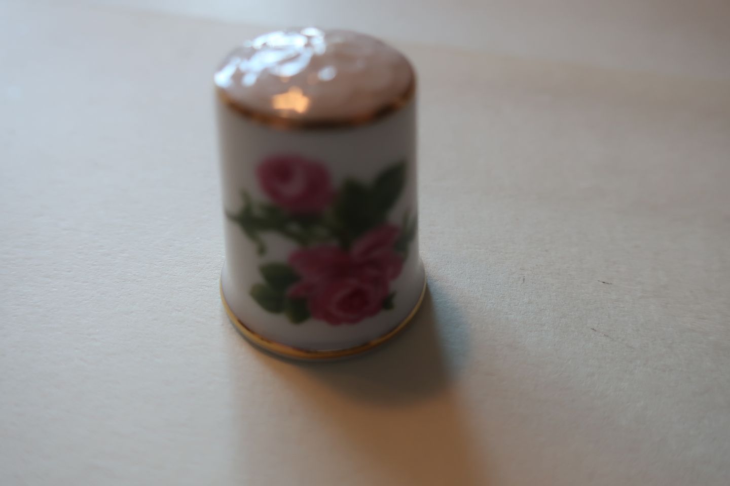 Old thimbles made op porcelain Decoration with a rose An the top is the decoration made like a flower In a good condition Articleno.: 4-31116