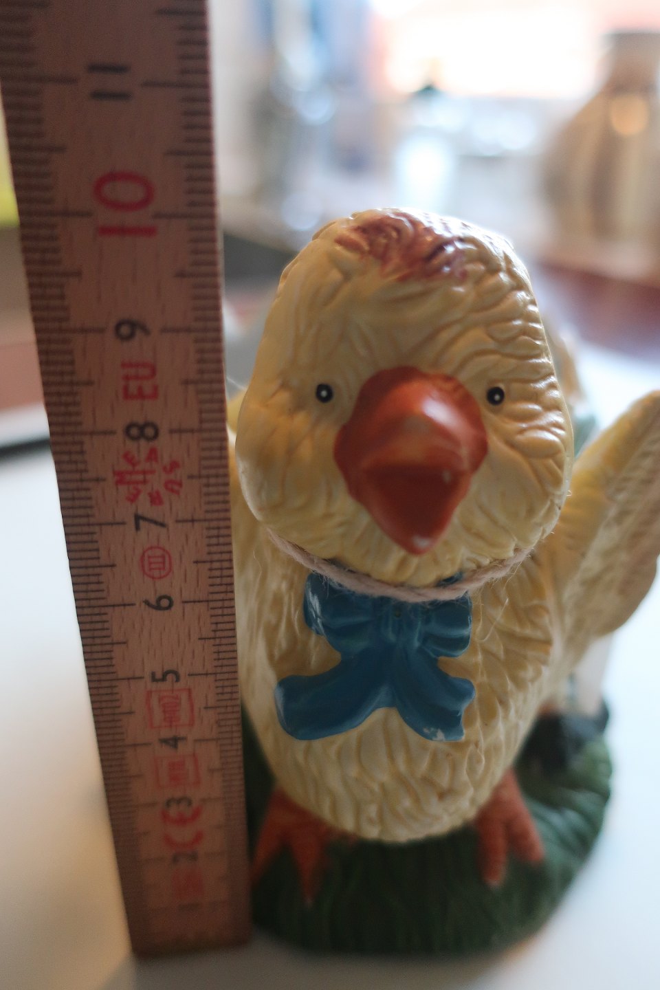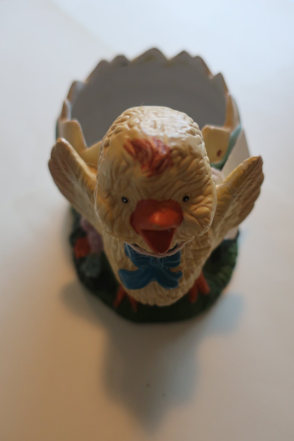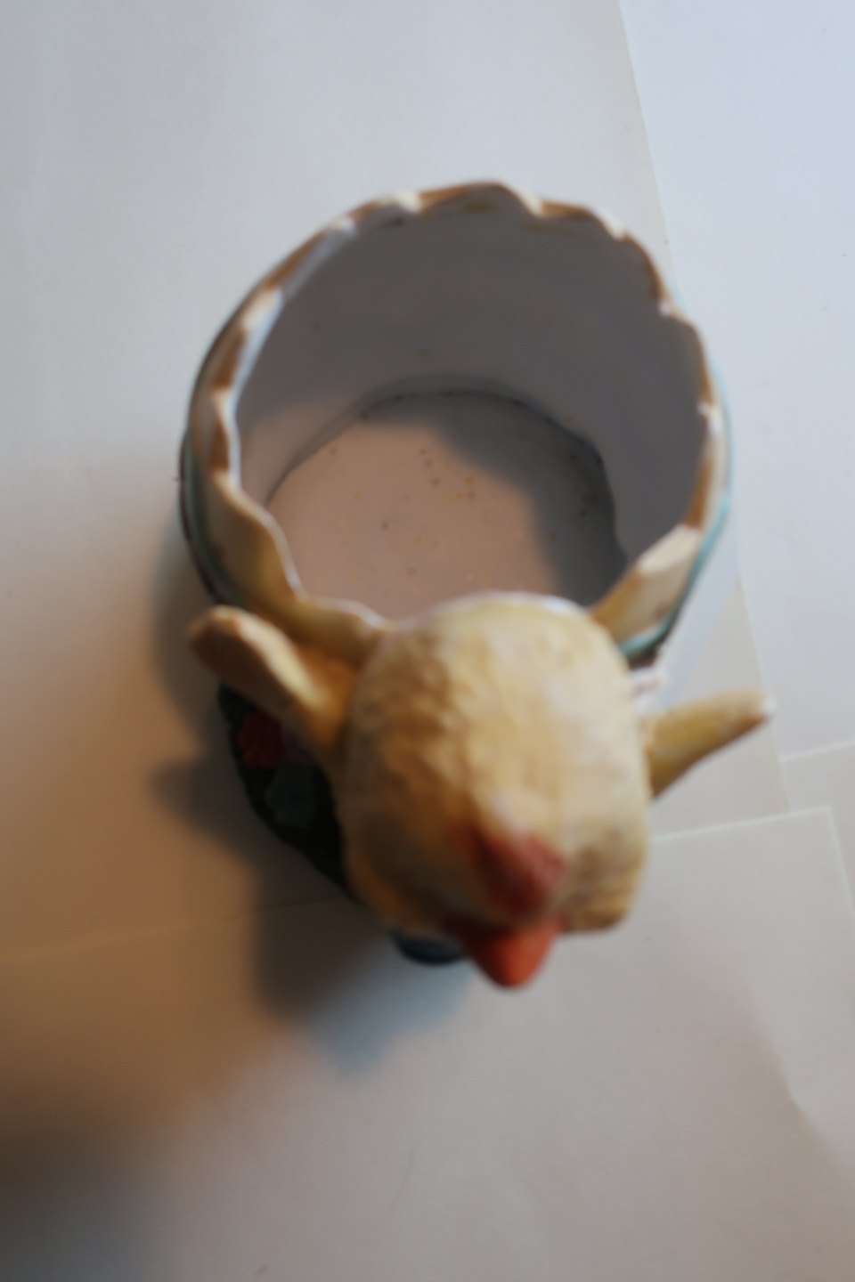 Gammel bisquitfigur som kylling med æg