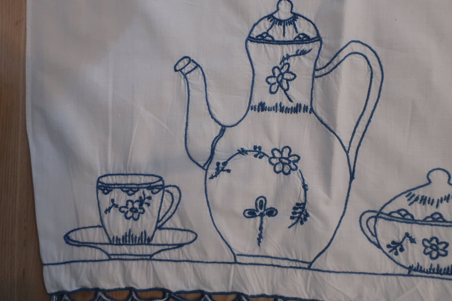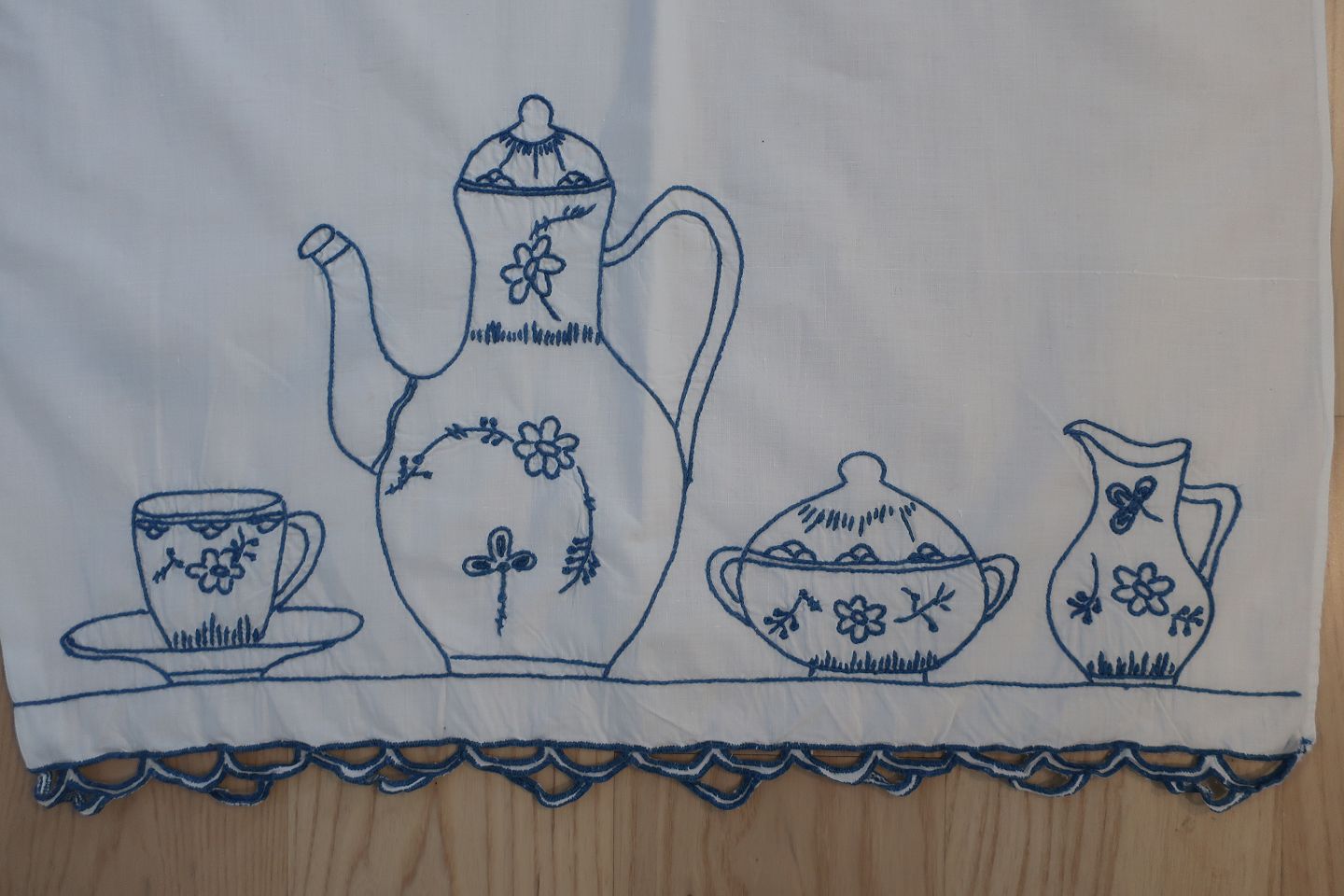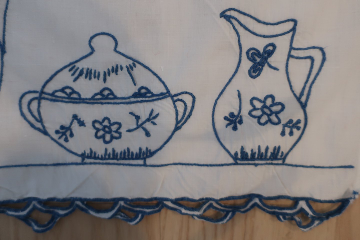 Schönes altes Paradestück mit blauer Stickerei - handgemacht