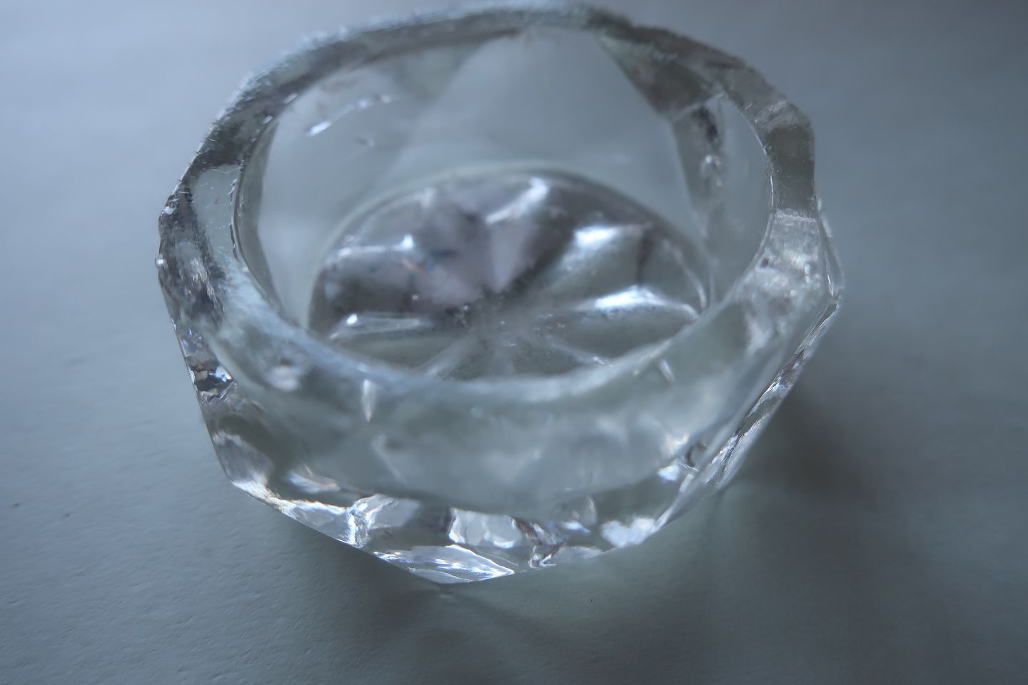 Gammel skål af krystalglas Med 4 fødder samt hank