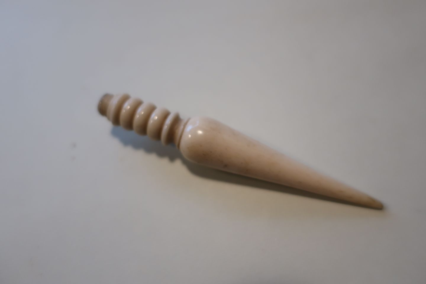 Smuk gammel pren, lavet af ben, bemærk hvor dekorativ denne pren er.