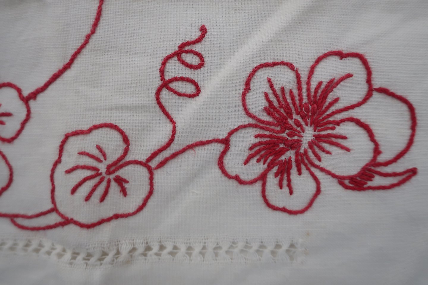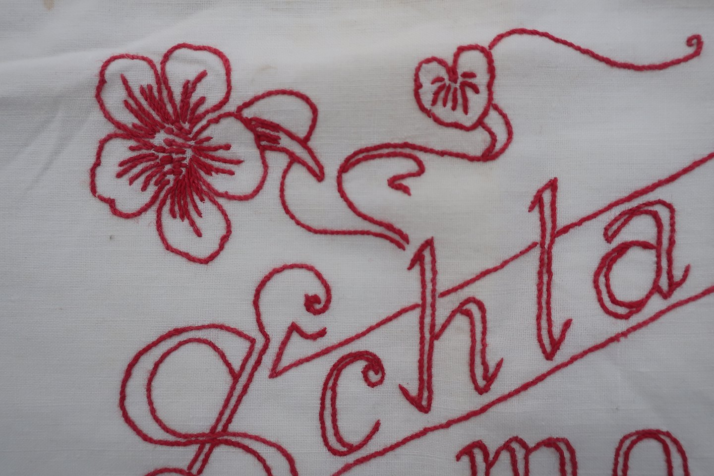 Håndbroderet med rødt