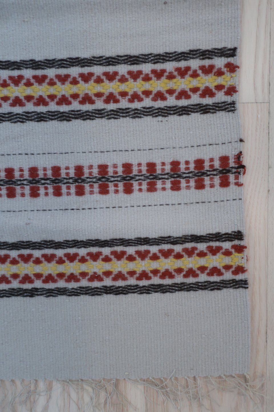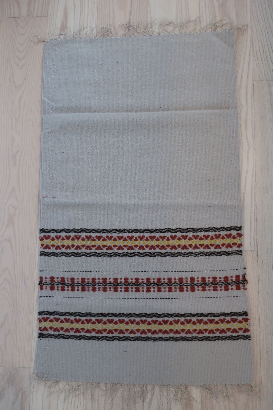 Gammel smuk bordløber, håndvævet af uld Kan også bruges som stykke til pude 86cm x 50cm Pudemål: 42cm x 50cm Skønne farver God stand Vi har et godt udvalg af bordløbere, håndbroderede eller håndvævede Varenr.: LØ8