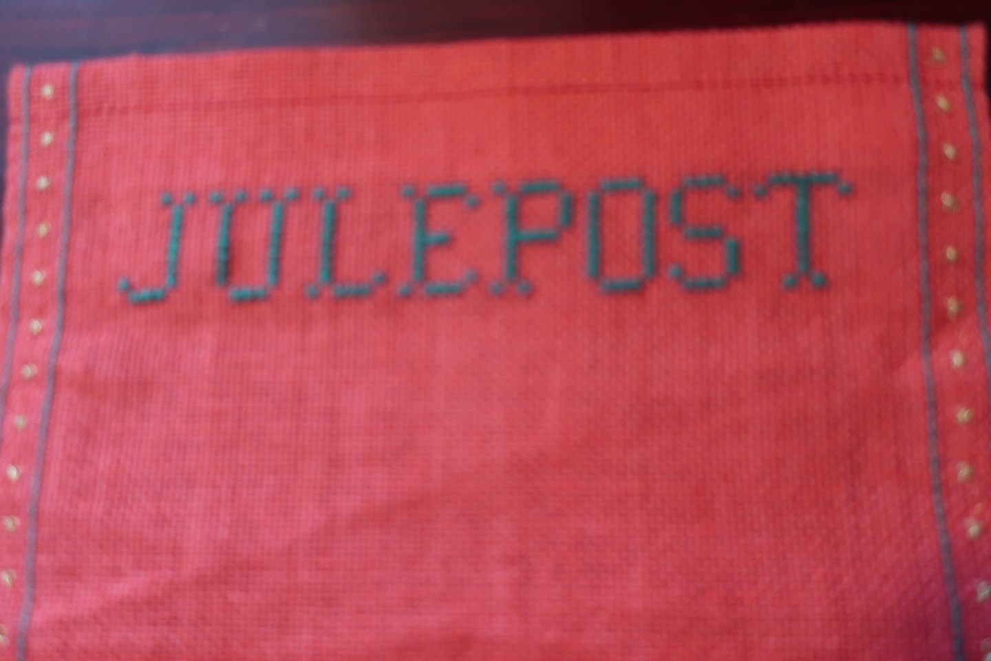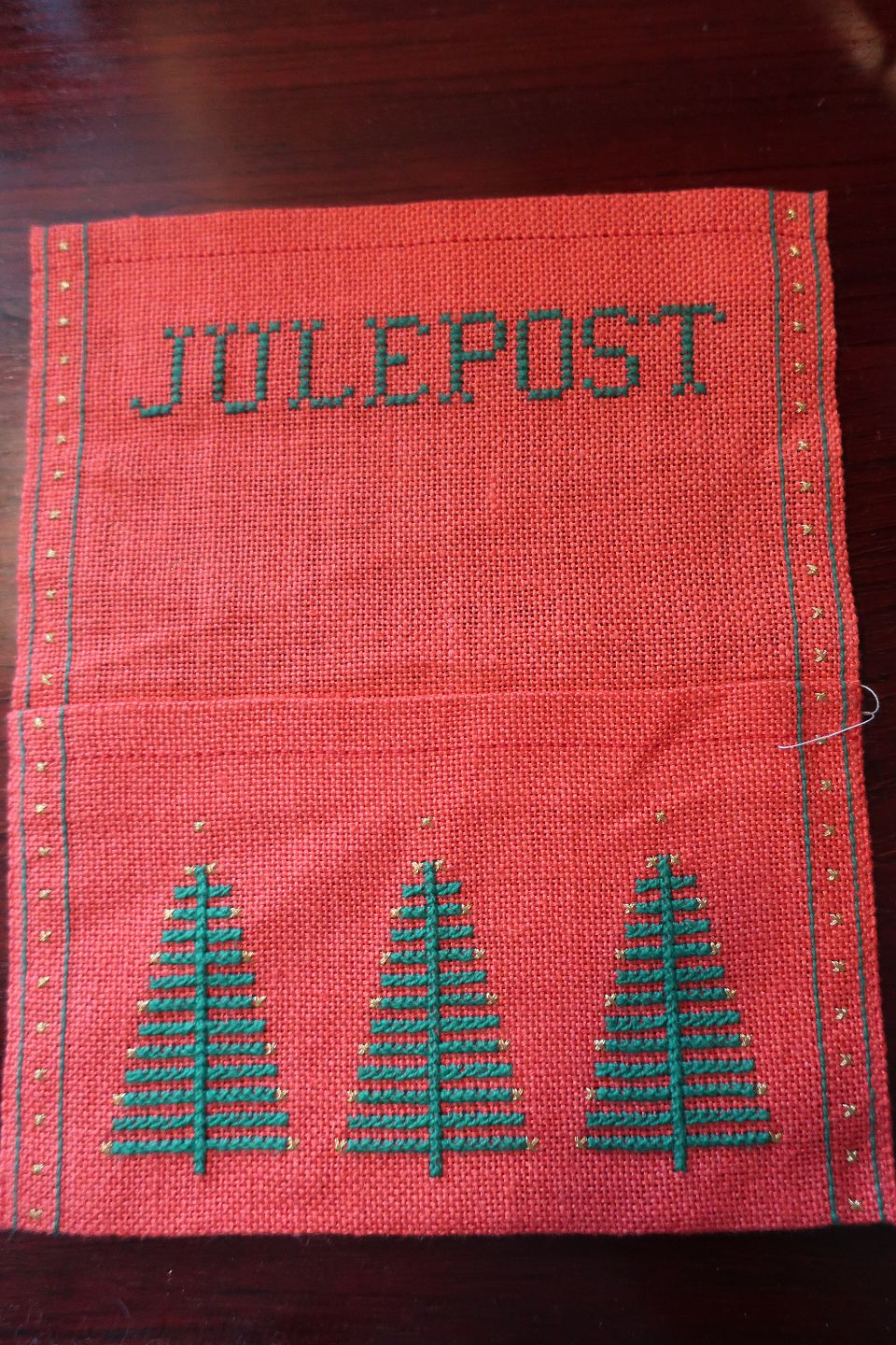 Gammel "kuvert"/ophæng til at samle juleposten i Håndbroderet 20 cm x 24cm God stand Varenr.: 4-511103