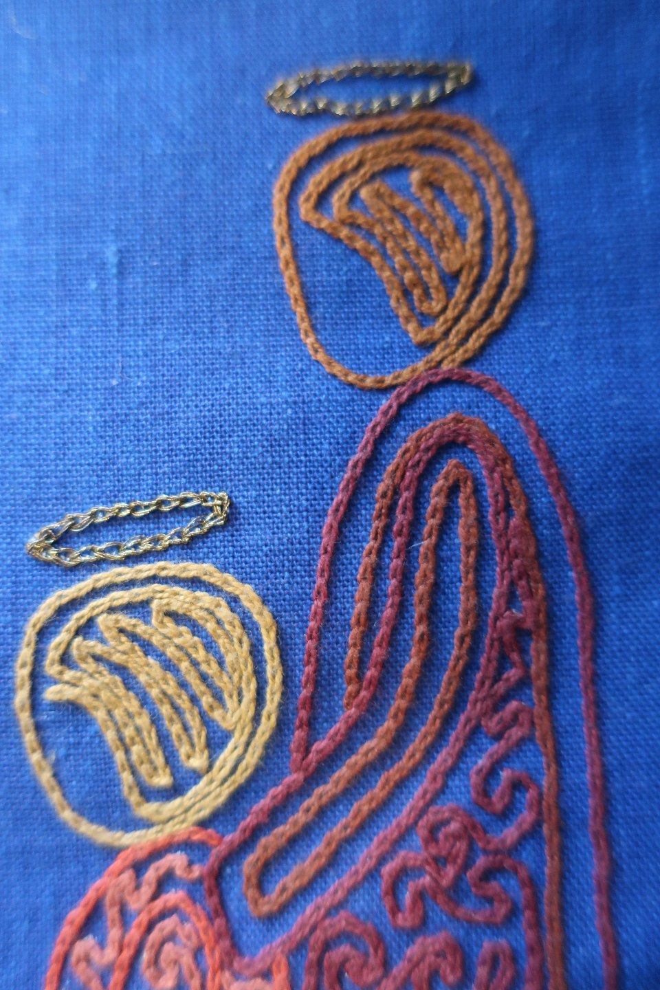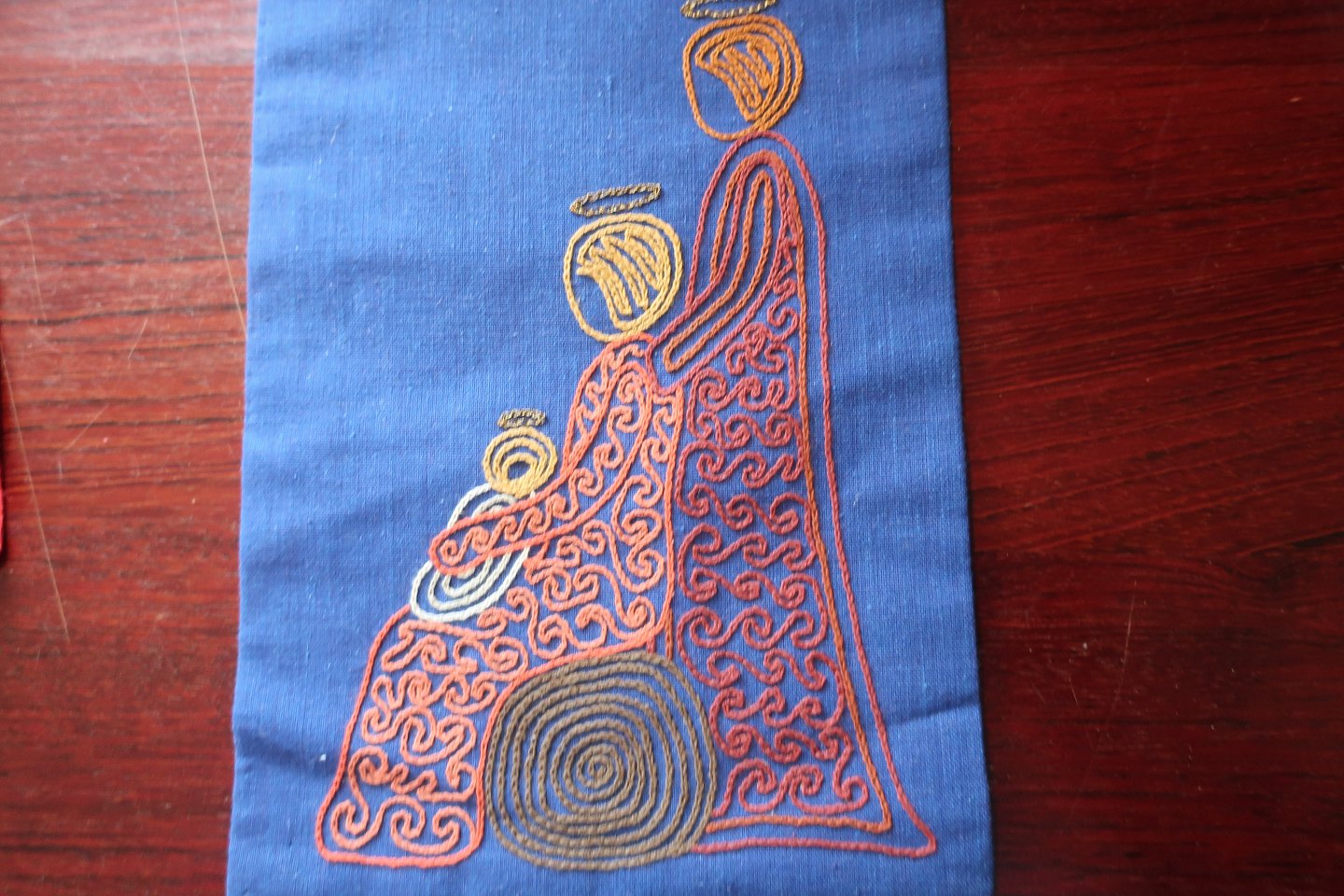 Gammelt juleophæng Håndbroderet Flot håndarbejde 38cm x 18cm Flot stand Varenr.: 4-511103