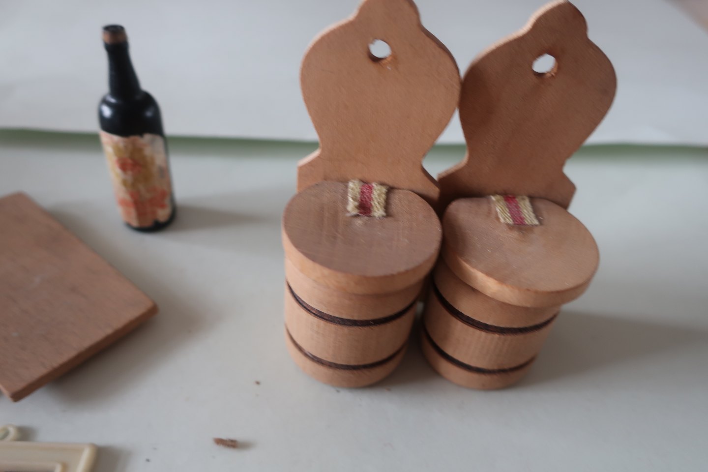 Bl.a. penalhus (inkl. mini-blyant) til dukken, 3 malerier til at hænge på væggen (det ene af porcelæn), 2 saltkar (kan åbnes), spækkebræt (2 stk) og flaske med velbevaret etikette