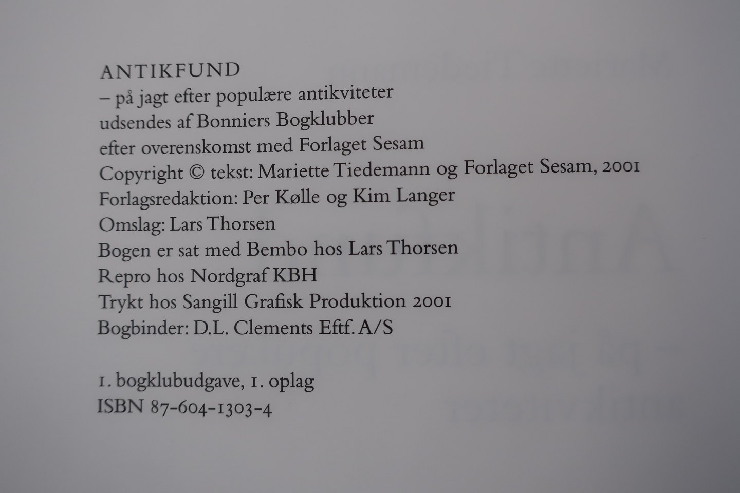 Antik fund - på jagt efter populære antikviteter Af Mariette Tiedemann Bonniers Bogklubber 2001, 1. oplag, 1. bogkulbudgave Sideantal: 142 God stand Varenr.: HY3-3-51702