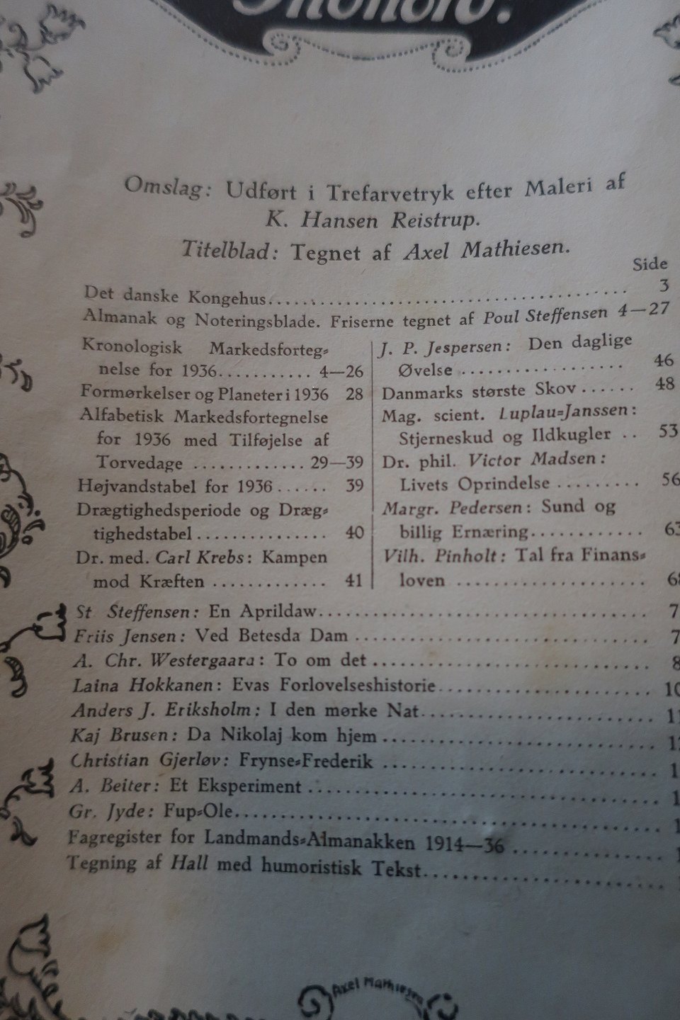 Landmandsalmanakken for året 1937 Udgivet af J. Gr. Pinholt Chr. Erichsens Forlag Inkl. højvandstabel for 1936 Sideantal: 159 Brugt stand Varenr.: HY4