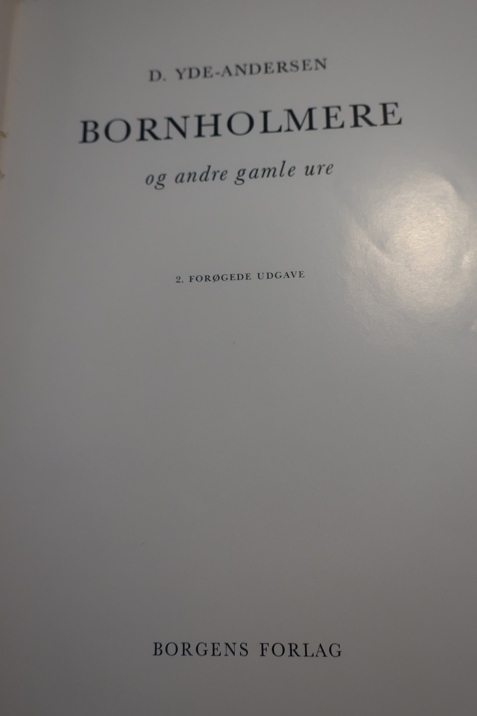 Bornholmere - og andre gamle ure Af D. Yde-Andersen 2. Forøgede udgave 1. udgave udkom i 1953 Borgens Forlag 1968 Sideantal: 202 God stand Varenr.: HY5