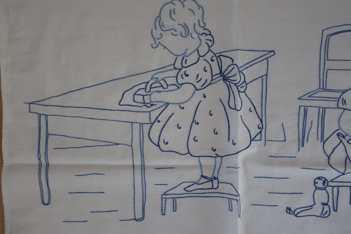 Schönes altes Paradestück mit blauer Stickerei - handgemacht