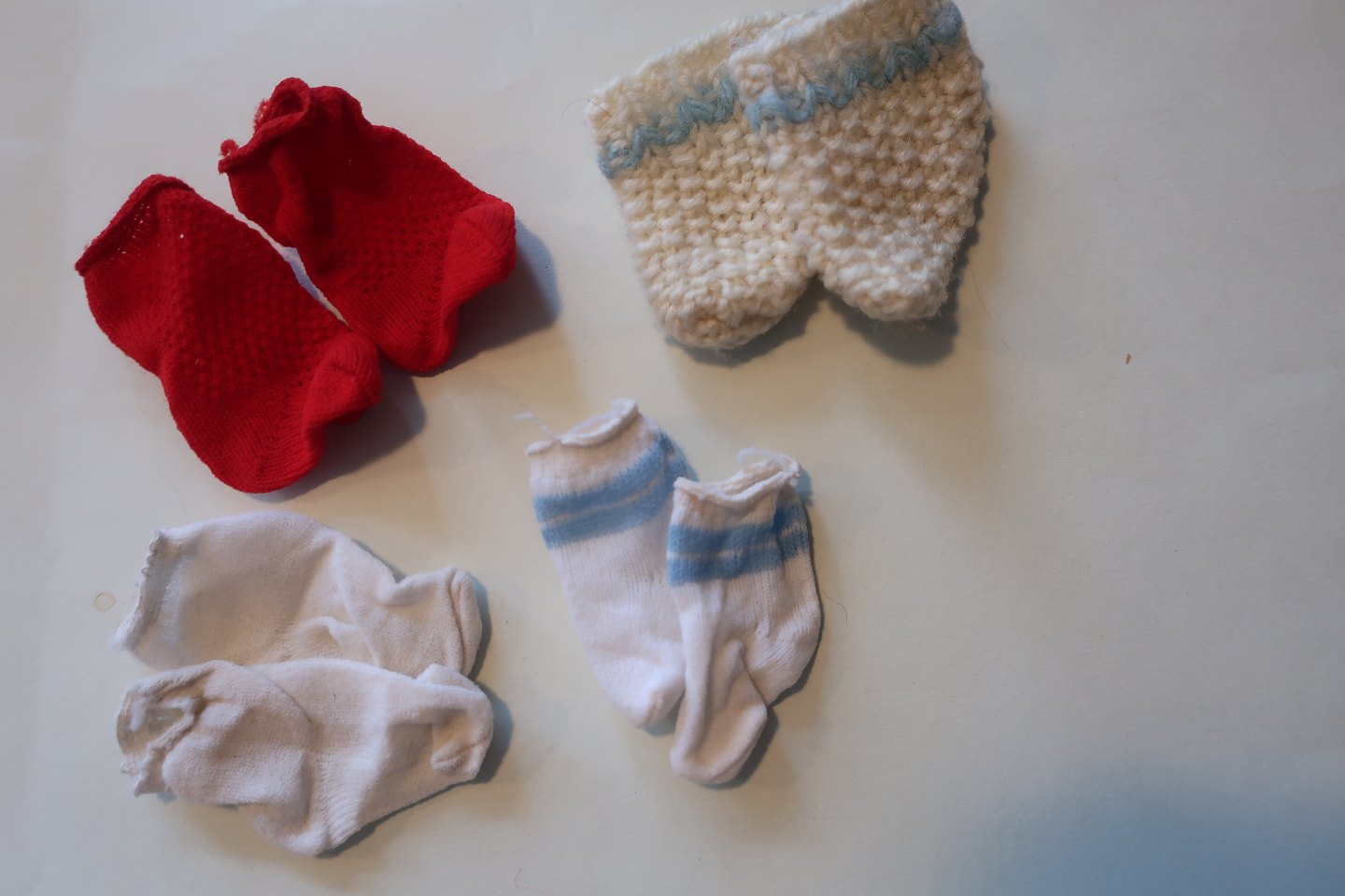 Shoes and socks for the doll 4 x shoes and 4 x socks Size 0 Stamp underneath From the 1950/1960'years In a good conditioon Articleno.: Li18