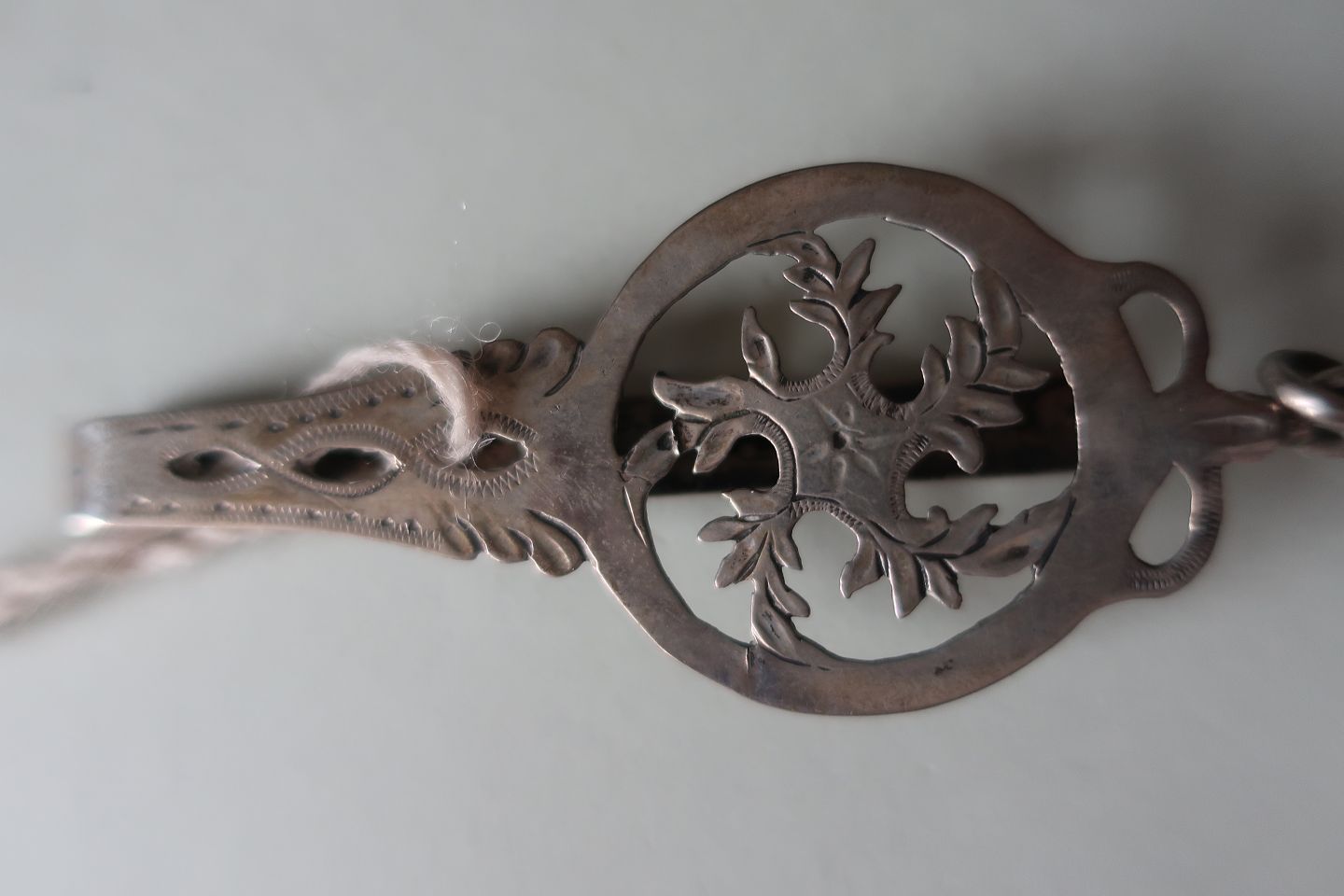 Garnet sættes derefter fast i giljekrogen, og det var dermed muligt at gå omkring og strikke, uden at skulle holde styr på garnnøglet