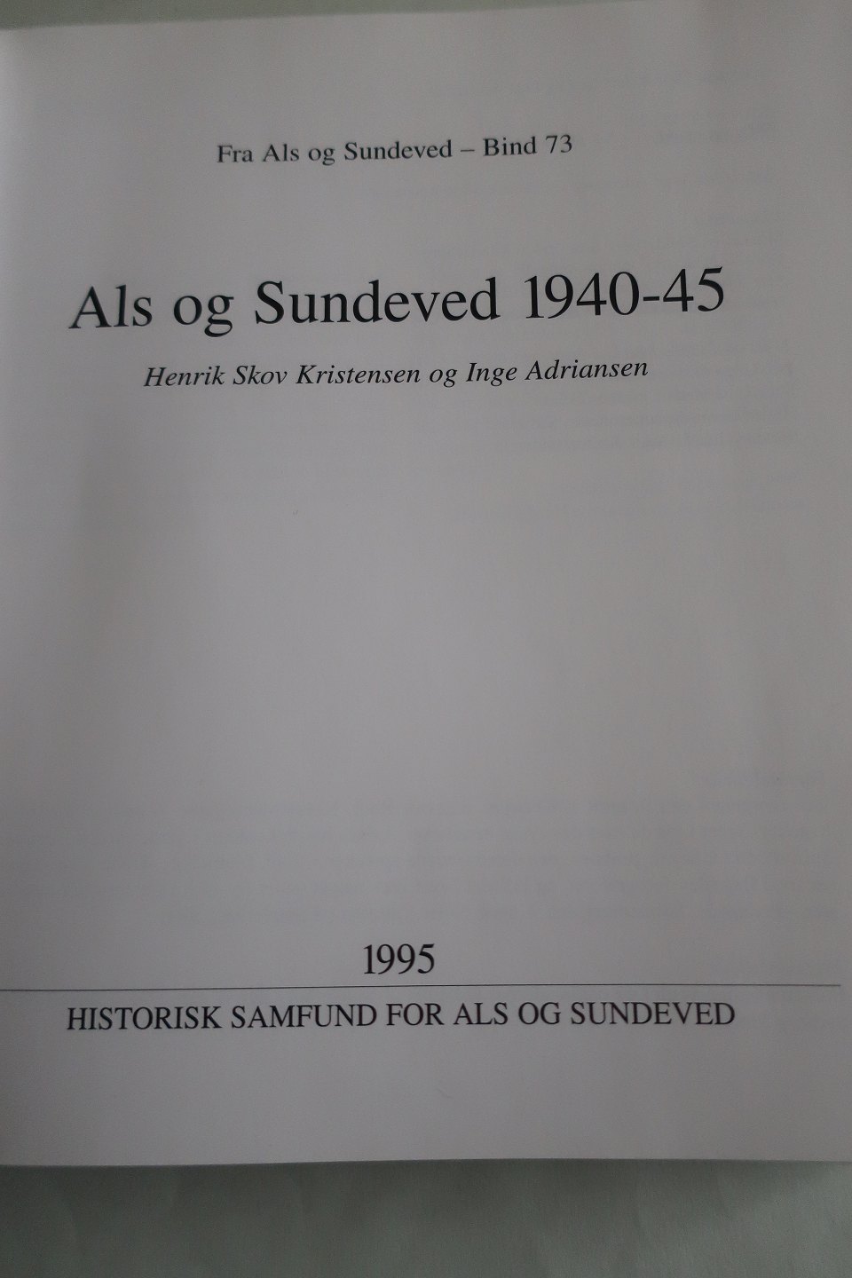 Als og Sundeved 1940-1945 Af Henrik Skov Kristensen og Inge Adriansen Tilegnet Harald Reosdahl Bind 73 1995 God stand Varenr.: R3HY1-4-51119