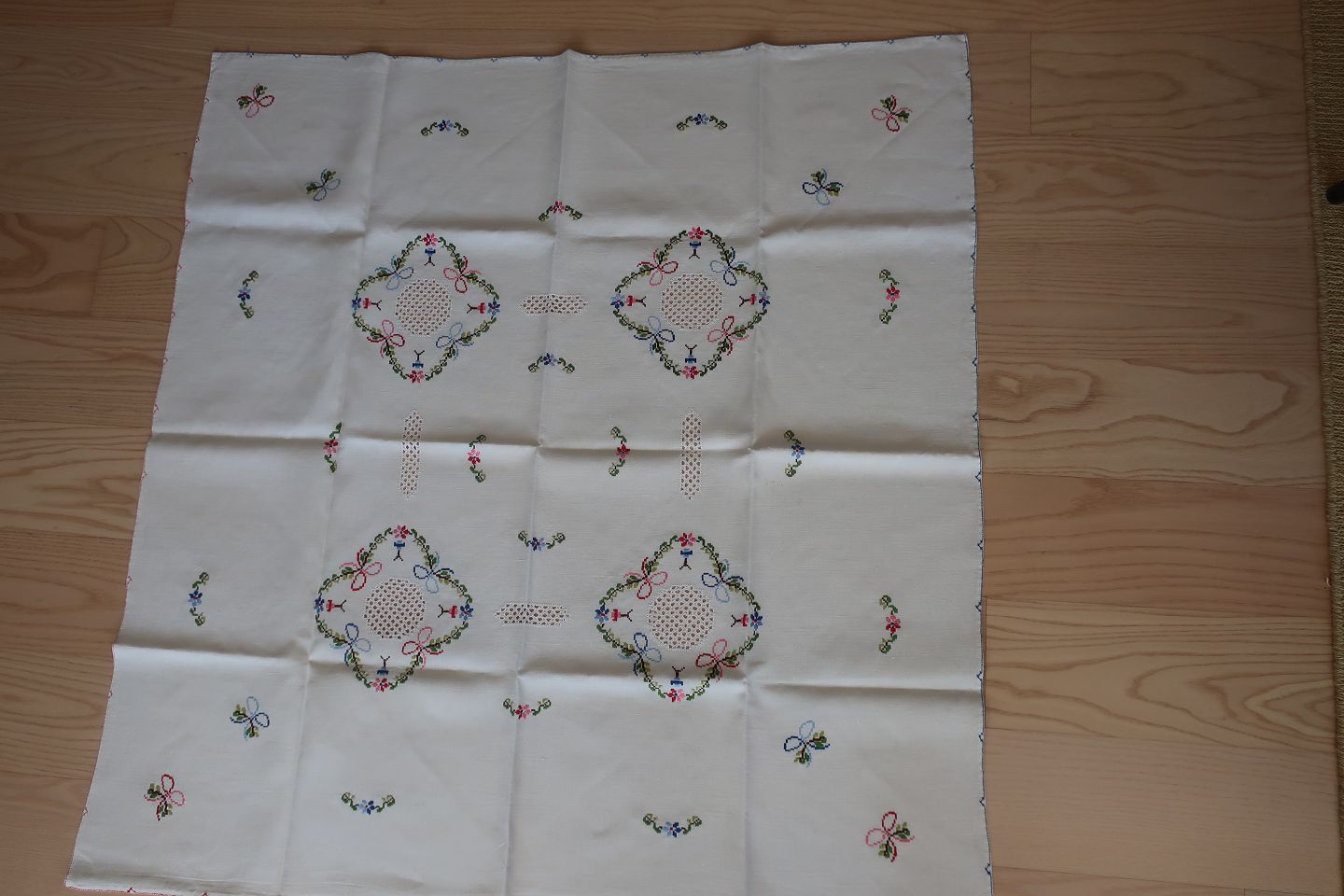 Gammel dug Håndbroderet med farvet broderi Ca. 102cm x 97cm Meget flot stand Varenr.: DG96