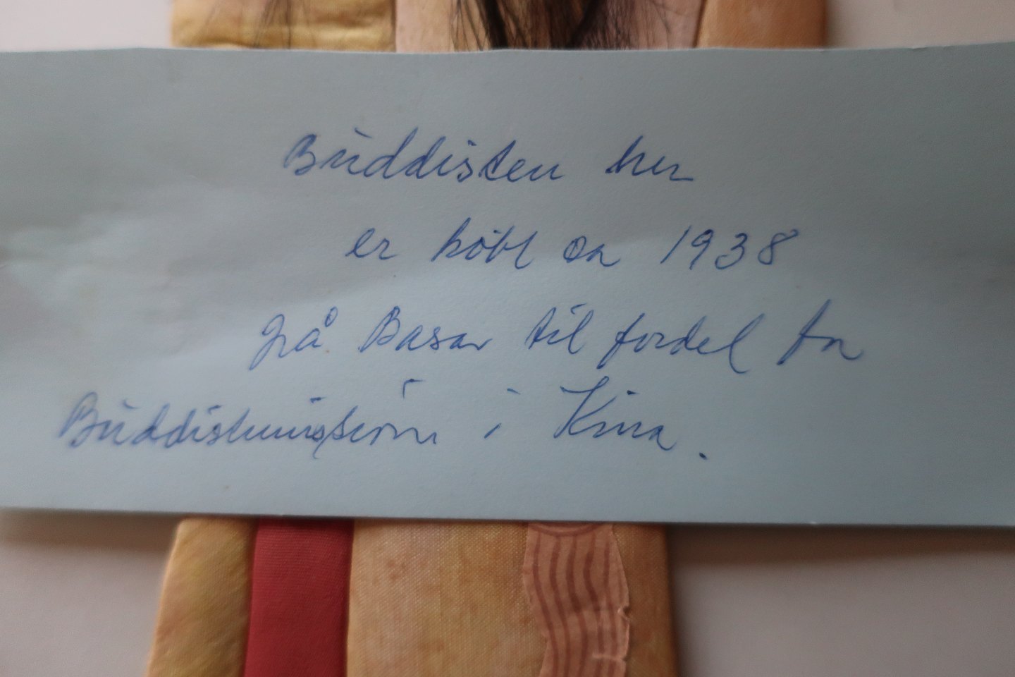 It was bought about 1938 by the original owner at a bazaar for the benefit of the Buddhistmonks in China
