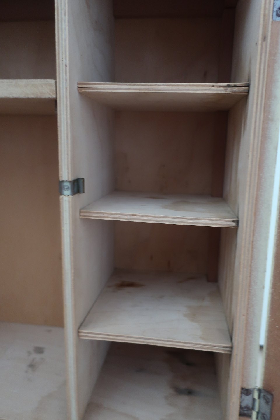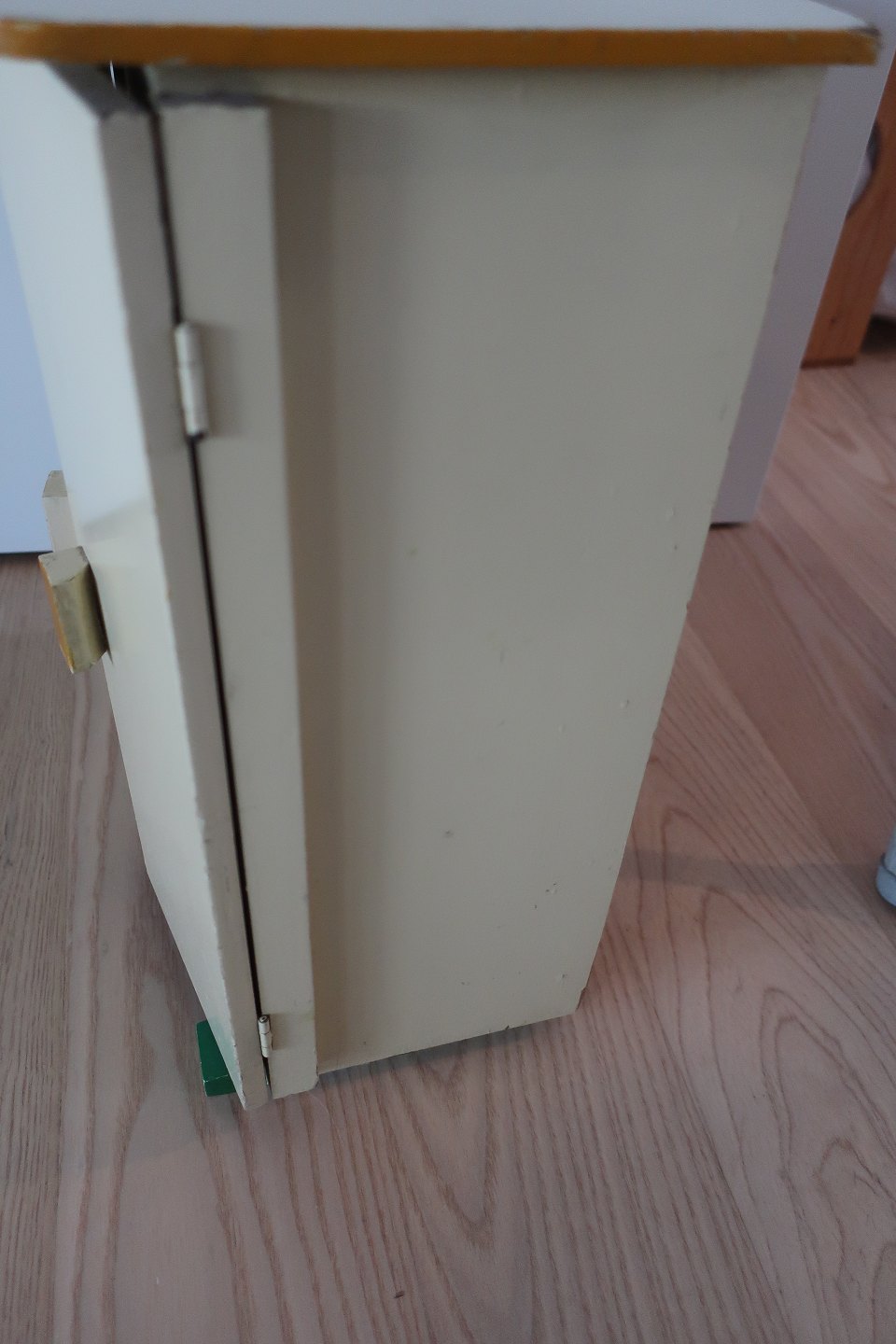 Gammelt dukkeskab til opbevaring for børnene af dukketøjet og andet