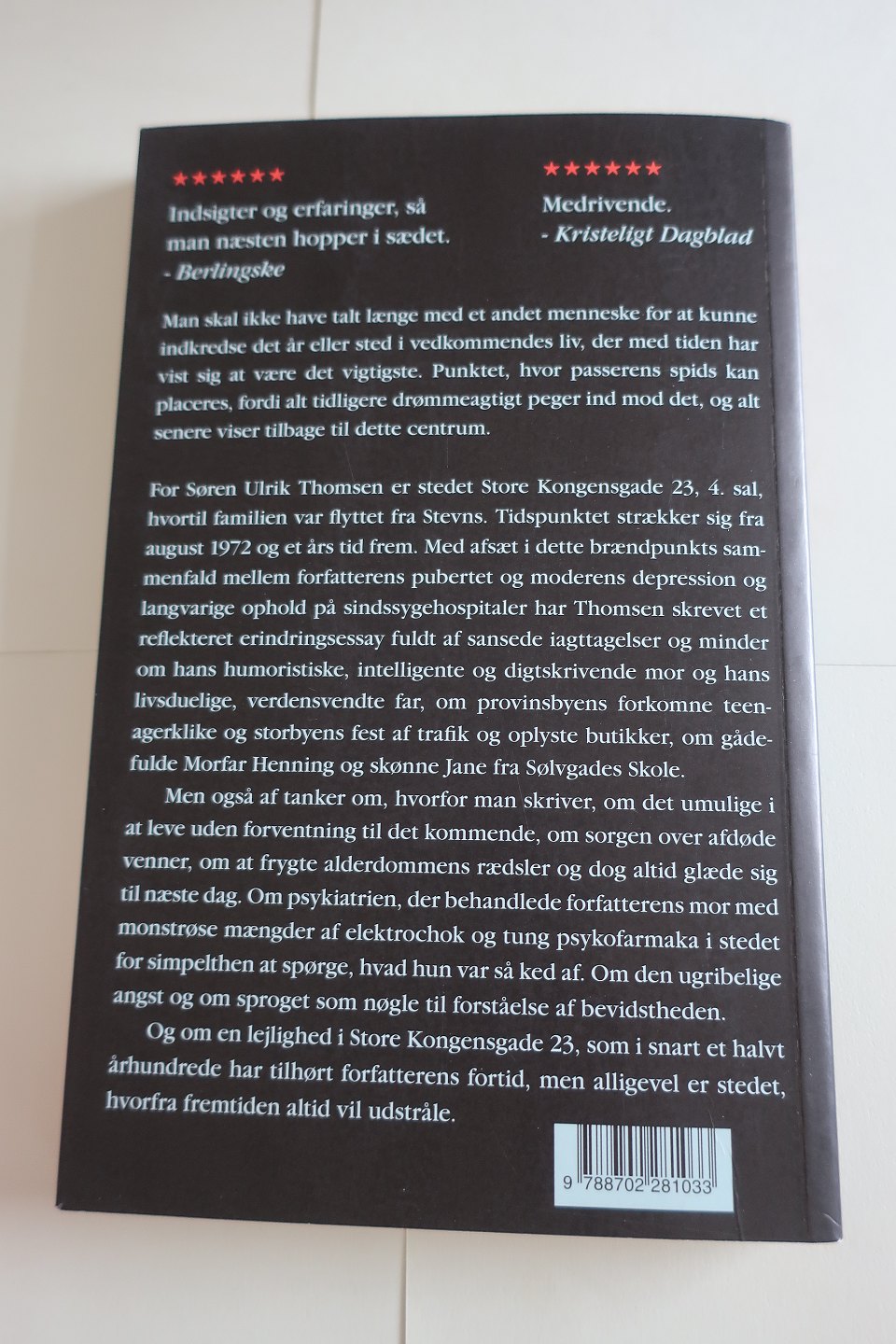 Store Kongensgade 23 Af Søren Ulrik Thomsen Et essay Beskrivelser om minder fra Søren Ulrik Thomsen Gyldendal 2021 Sideantal: 95 Som ny Varenr.: R5HY5-KL5