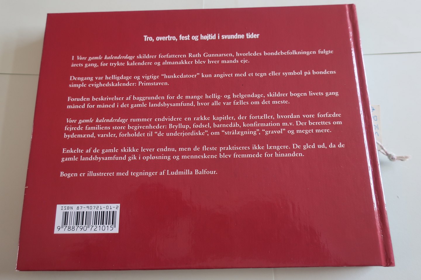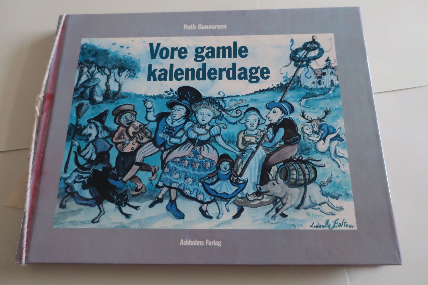 Vore gamle kalenderdage Af Ruth Gunnarsen Tro, overtro, fest og højtid i svundne tider Smukt illustreret af Ludmilla Balfour Forlag Askolms Forlag 1998 Sideantal 144 Som ny, men falmet udenpå Varenr.: R5HY6-KL6