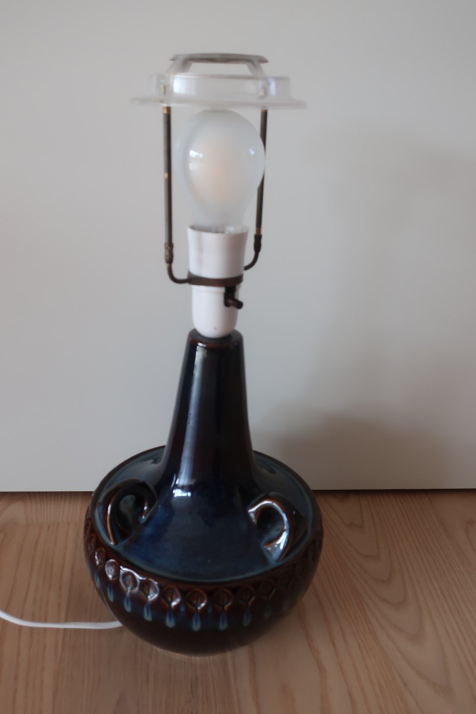 Smuk blå glasur med brunlig dekoration (typisk Søholm-blå)