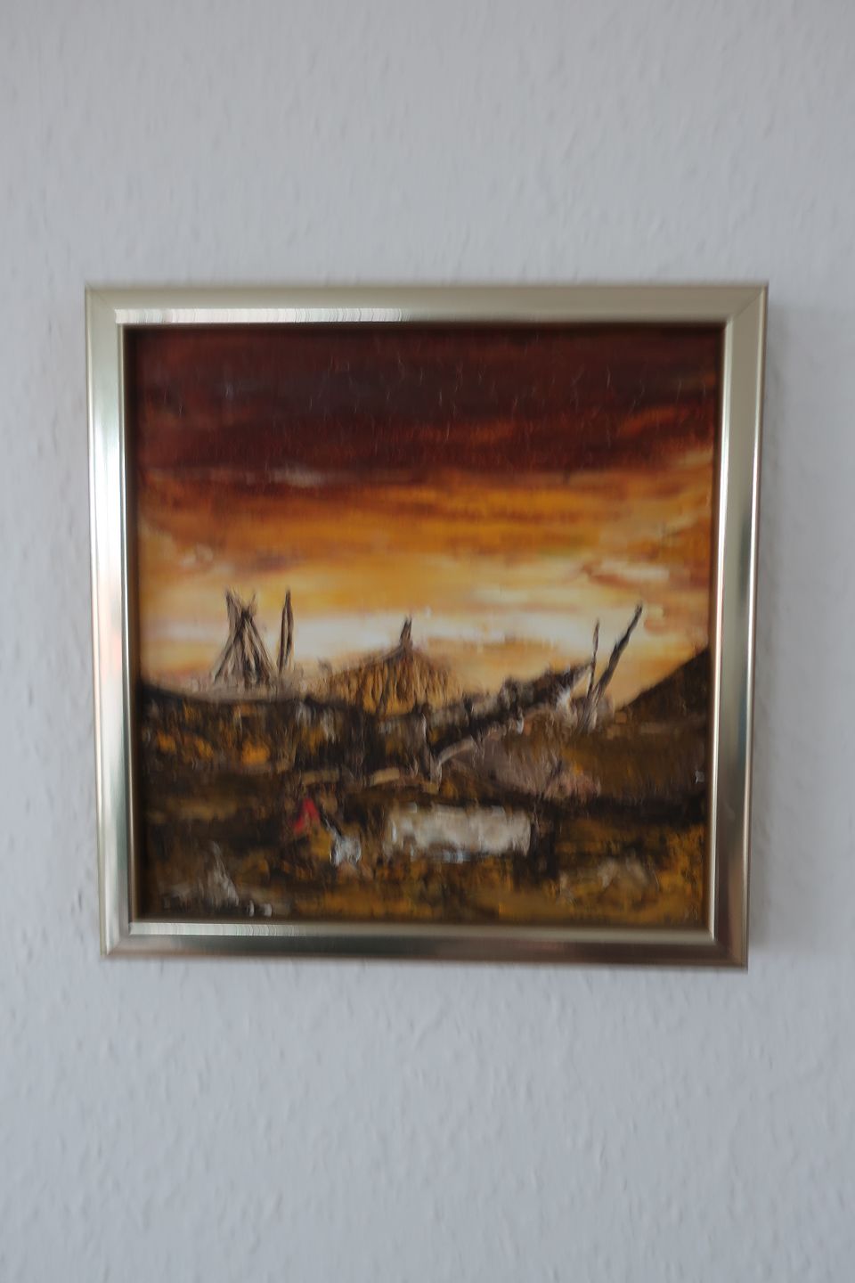 Stig Sander Maleri Ca.: 24cm x 24cm inkl. ramme