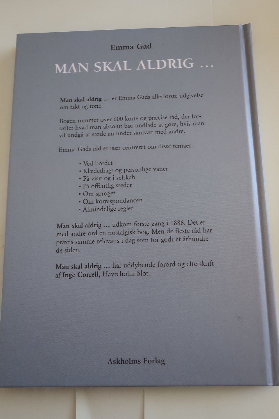 Bogen er Emma Gads allerførste udgivelse om takt og tone