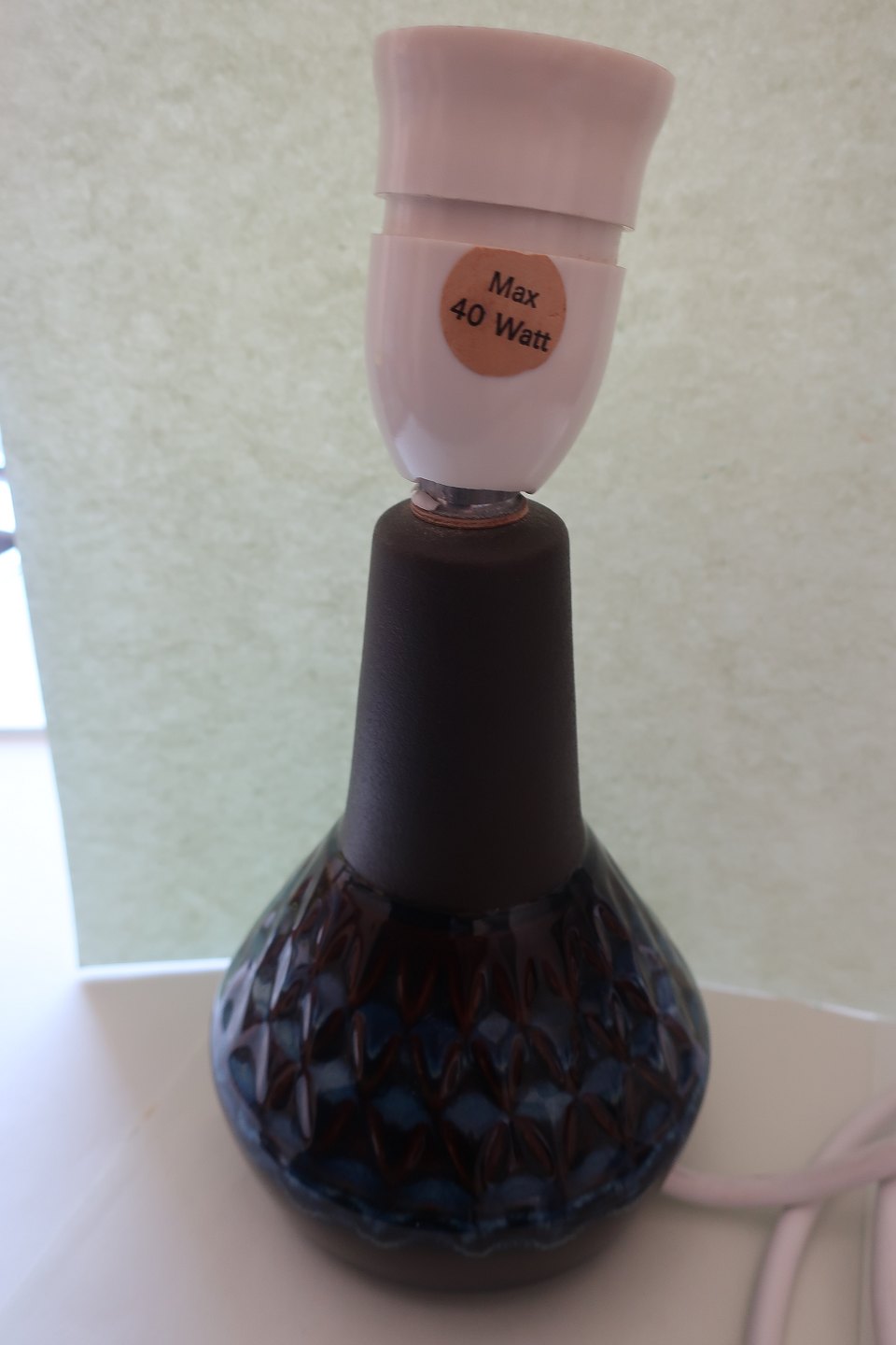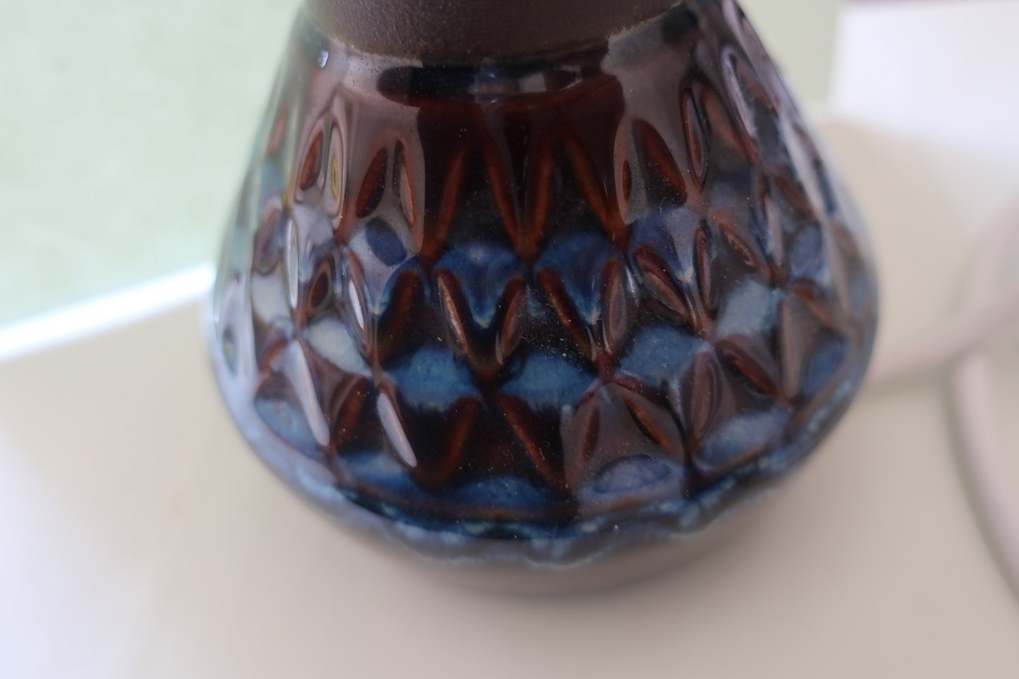 Søholm lampe Søholm Stentøj Bornholm Denmark Design: Einar Johansen Stemplet Fra 1960'erne H: 14cm Diam: 8cm i bunden Bemærk: Fatningen er løs God stand Varenr.: KM1005