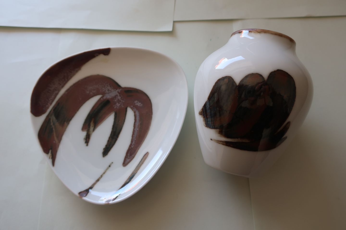 Bing & Grøndahl (B&G), Danmark Sæt med lille vase og lille fad Art Nouveau Model: 158/5012 og 160/5292 1. Sortering H: 10cm (vase) B: 12cm (lille fad) Helst samlet køb, men kan evt. købes hver for sig Flot stand Varenr.: KM1005