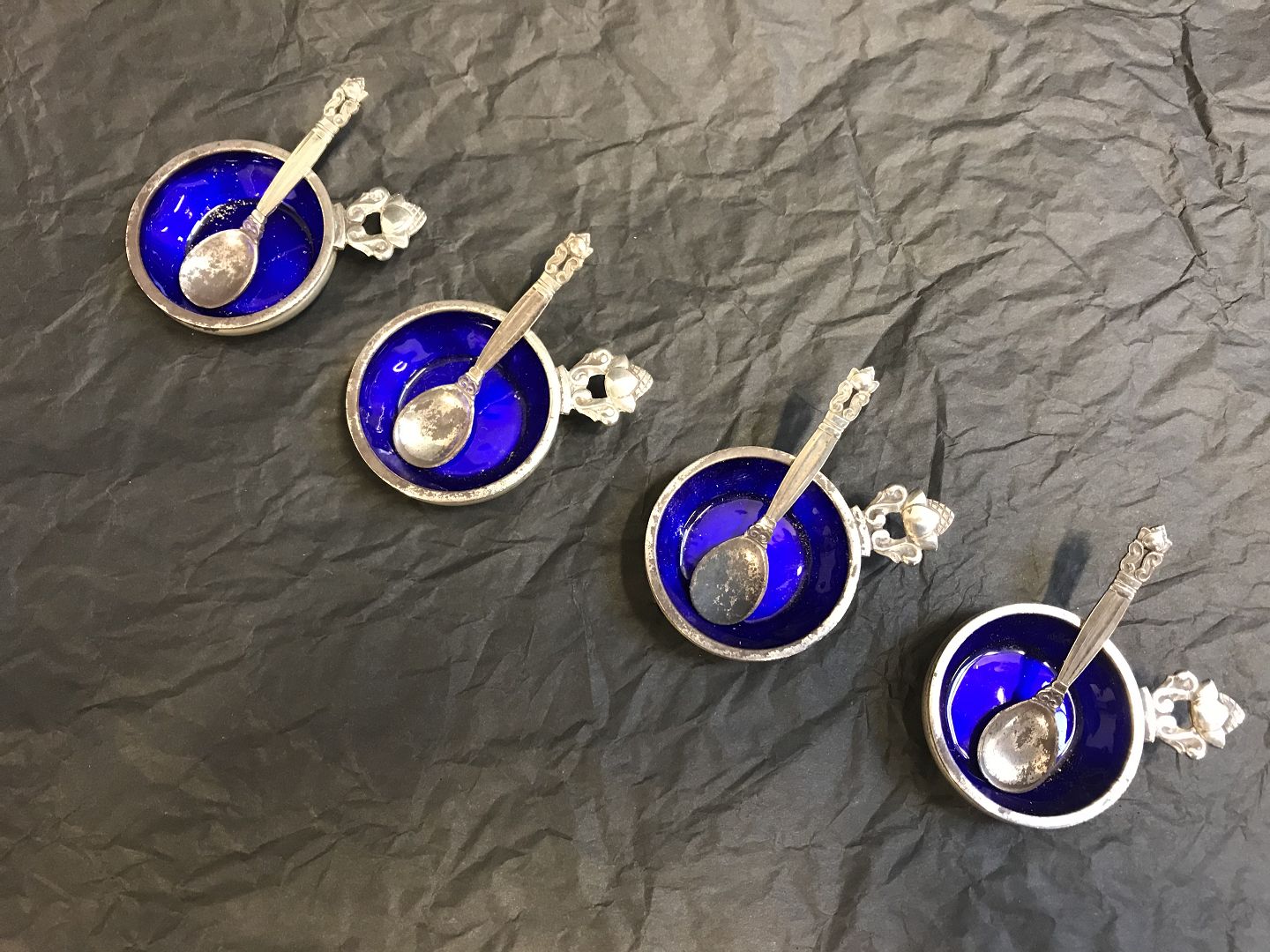 4 Pieces of Georg Jensen , Silver Salt , konge